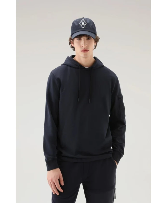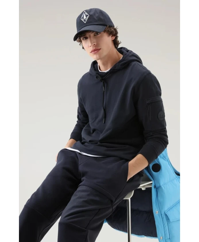 Откройте для себя худи Woolrich - идеальное сочетание комфорта и стиля. Изготовленное из легкого и удобного хлопка, это худи создано для повседневной носки благодаря своим практичным характеристикам. Ключевые особенности: Синий | Хлопок | Капюшон на шнурке | Карман на молнии на левом рукаве | Эластичные манжеты | Небольшой вышитый логотип | Размер и посадка: Стандартный крой | Состав и уход: 100% хлопок | Машинная стирка в холодной воде, сушка в барабане при низкой температуре