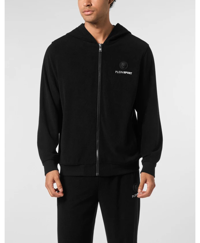 Толстовка Plein Sport Hoodie Sweatjacket - это флисовая куртка на молнии, разработанная для активного отдыха. Она сочетает в себе мягкую, похожую на губку поверхность и лаконичные графические детали, создавая спортивный образ. Идеально подходит для многослойной одежды и ежедневных тренировок. Ключевые особенности: Черный цвет | Флис | Застежка на молнию | Два боковых кармана | Мягкая, похожая на губку поверхность | Нашивка с логотипом на левой стороне груди | Ребристые манжеты