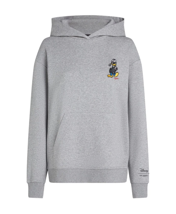 Худи Karl Lagerfeld Graphic Logo украшено фирменным рисунком из коллаборации и ярким эскизом Дональда Дака, сочетая игривую графику с повседневным комфортом для создания непринужденных многослойных образов. Ключевые особенности: светло-серый меланж | хлопок | капюшон | карман-кенгуру | графический эскиз Дональда Дака | деталь из коллаборации K'initial | ребристые манжеты и нижний край | длинные рукава | состав и уход: 90% хлопок | 10% полиэстер