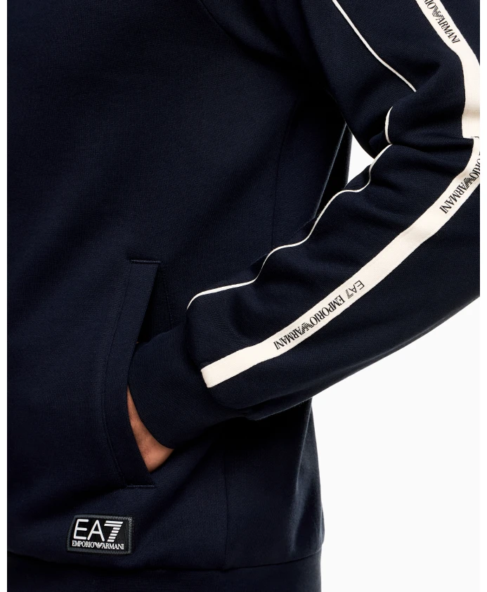Худи Emporio Armani EA7 Logo Series сочетает в себе комфорт и спортивный фирменный стиль. Логотип на плечах и логотип EA7 на груди делают его универсальным выбором для повседневной и спортивной одежды. Основные характеристики: темно-синий | хлопковая смесь | капюшон | два наклонных передних кармана | капюшон | длинные рукава | логотип на плечах | логотип EA7 на груди | размеры и посадка: стандартный крой | состав и уход: хлопковая смесь