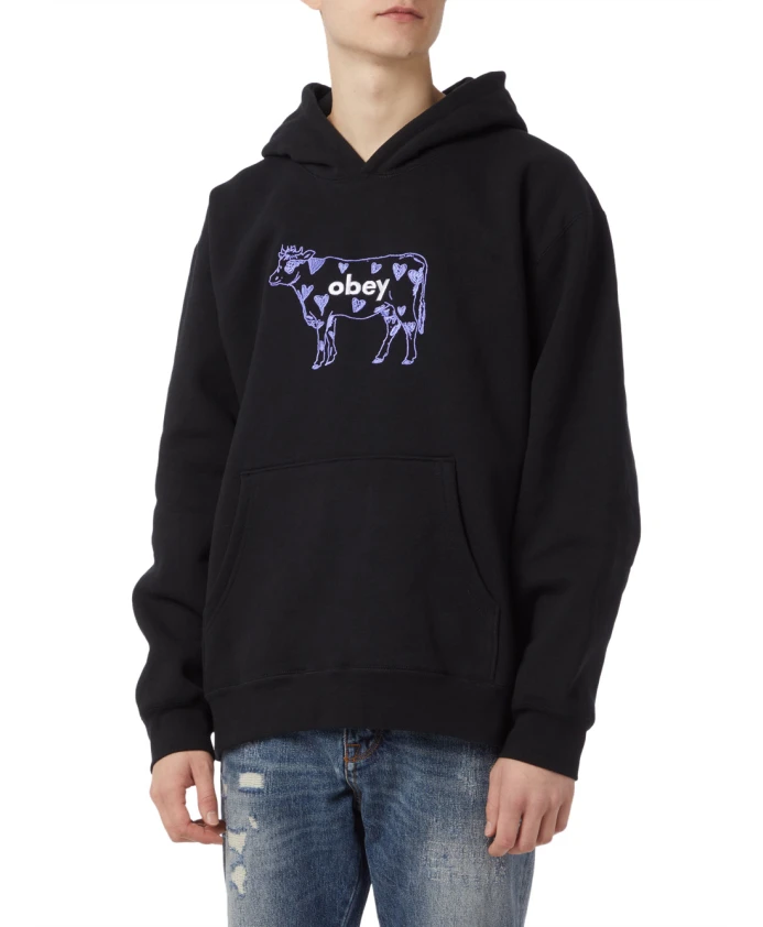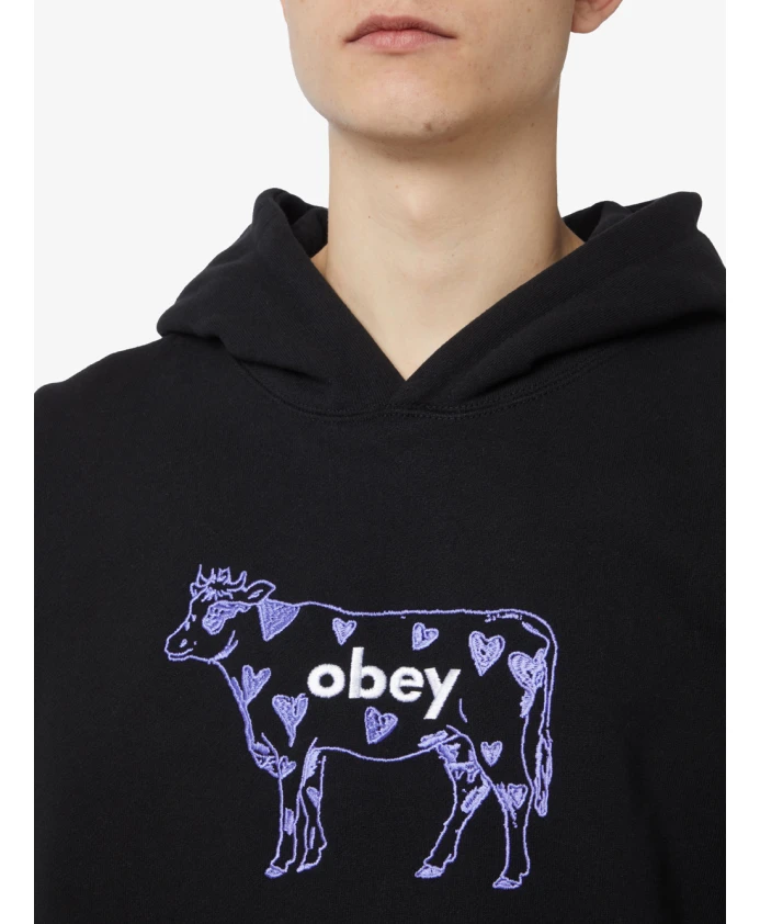 Толстовка с капюшоном из плотной коровьей ткани Obey, черный