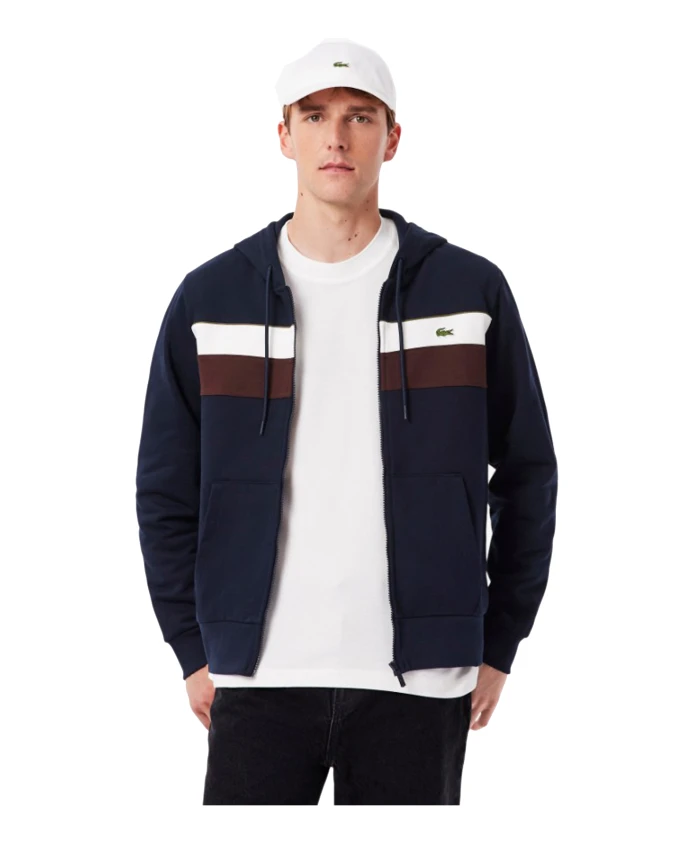 Худи на молнии с цветовыми блоками Lacoste, синий