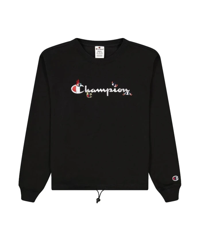 Оставайтесь в тепле и стиле в этой черной толстовке Champion с круглым вырезом. Изготовленная из мягкой смеси 67% хлопка и 33% полиэстера, эта толстовка имеет квадратный крой и регулируемый шнурок на талии. Вышитые детали на груди и рукавах добавляют изюминку, а ребристый воротник и манжеты обеспечивают комфортную посадку. Идеальная для любого случая, эта толстовка - обязательный элемент гардероба каждой модницы.