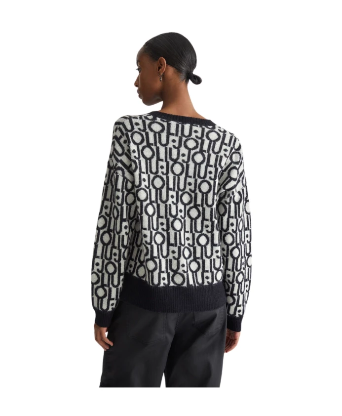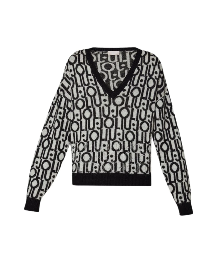 Подчеркните свой стиль с помощью этого женского вязаного топа от Liu Jo, выполненного в плотной вязке с жаккардовым логотипом. Изготовленный из смеси шерсти и альпаки, он имеет V-образный вырез, длинные рукава, жаккардовый логотип по всему периметру, украшен стразами, ребристые края, прямой крой, стандартную посадку и представлен в классических черном и белом цветах.