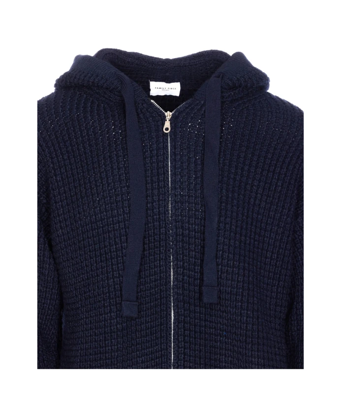 Оставайтесь в тепле и выглядите стильно в этой синей толстовке на молнии от FAMILY FIRST. Она имеет капюшон, длинные рукава, регулируемый капюшон на шнурке, ребристый низ и ребристые манжеты. Изготовлена из смеси акрила (10%), полиамида (45%) и шерсти (45%). Идеально подходит для повседневного гардероба современного мужчины.