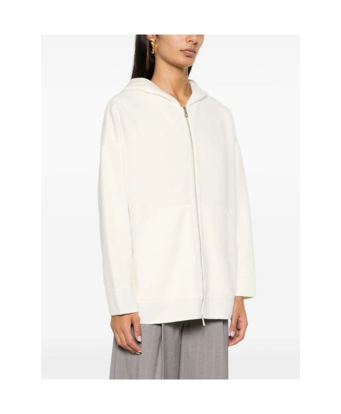 Белая флисовая толстовка с капюшоном на молнии Max Mara, белый 27 420₽