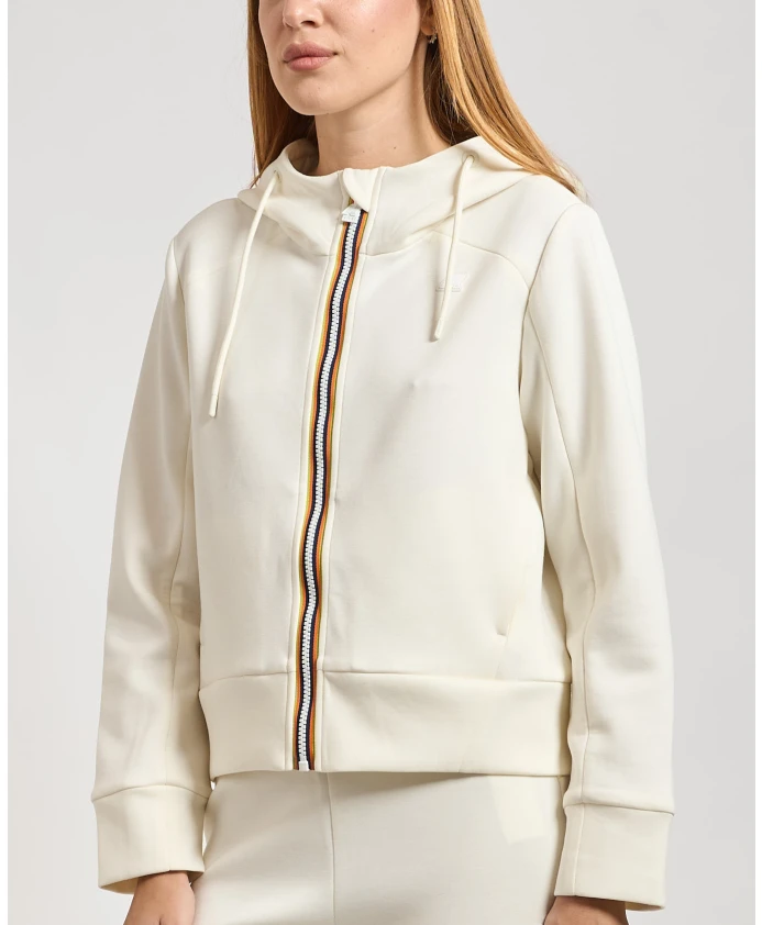 Подчеркните свой стиль с помощью женской укороченной толстовки K-Way Divine из эластичной матовой ткани интерлок. Эта толстовка на молнии имеет регулируемый капюшон, молнию во всю длину и стандартный крой. Модель носит размер S, рост 1,70 м.