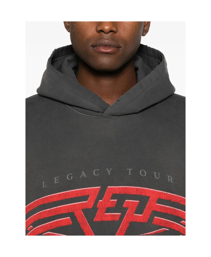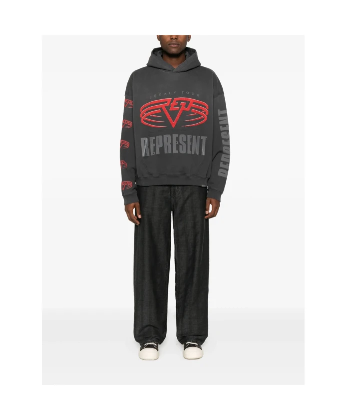 Оставайтесь стильными и чувствуйте себя комфортно в этой серой мужской толстовке REPRESENT с графическим принтом, длинными рукавами, передним карманом и свободным капюшоном. Изготовлена из 100% хлопка.