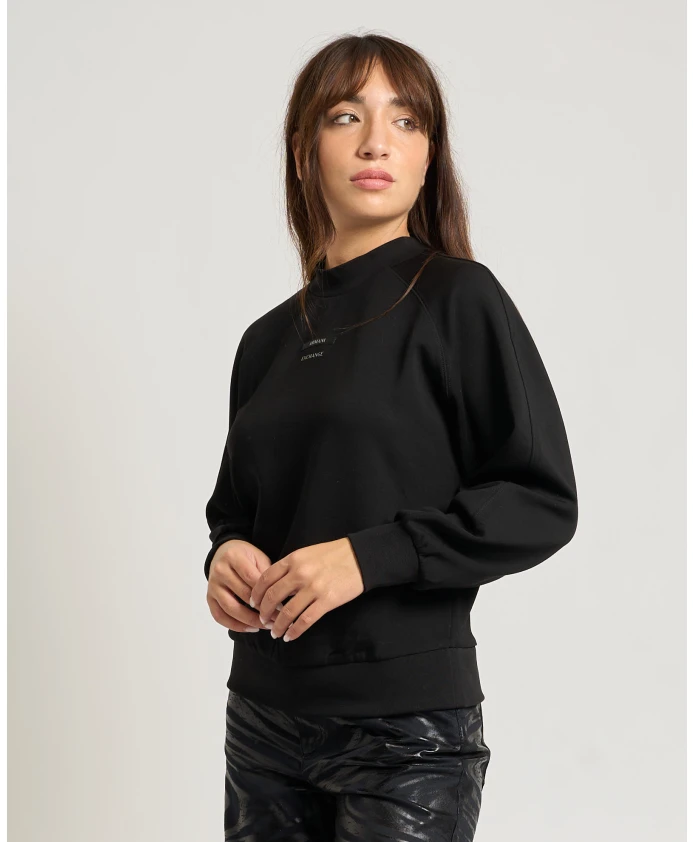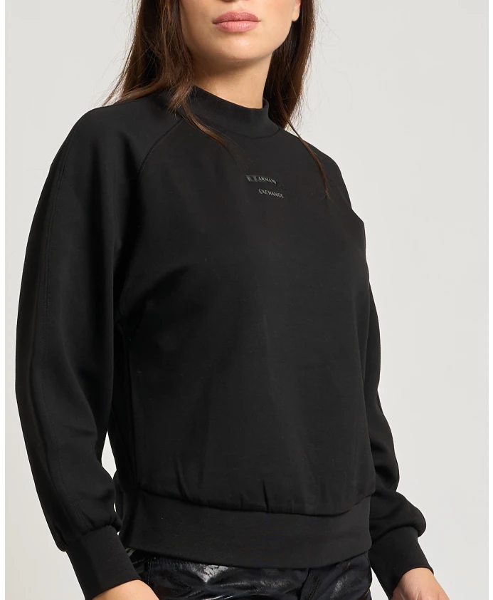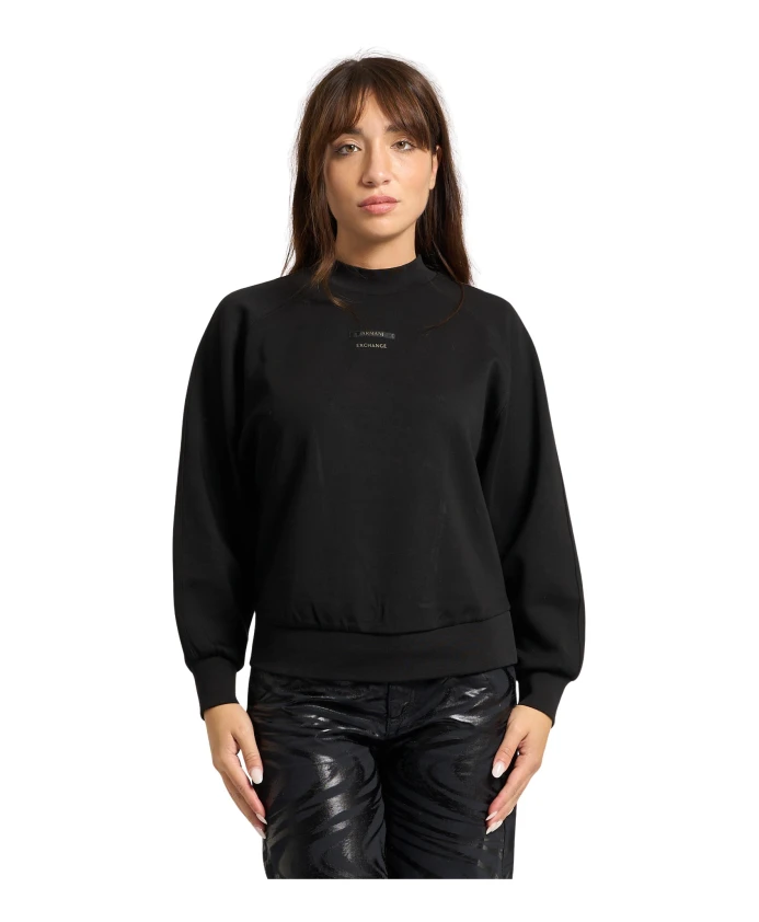 Подчеркните свой повседневный стиль с помощью этой женской толстовки Armani Exchange с круглым вырезом, высоким воротником, рукавами реглан и логотипом спереди. Модель носит размер S, рост 1,65 м.