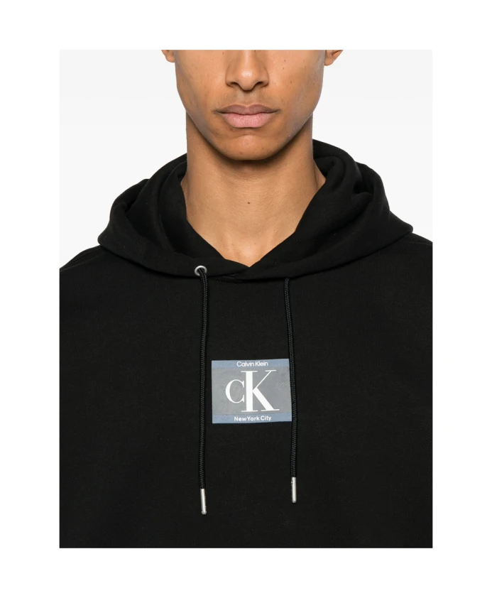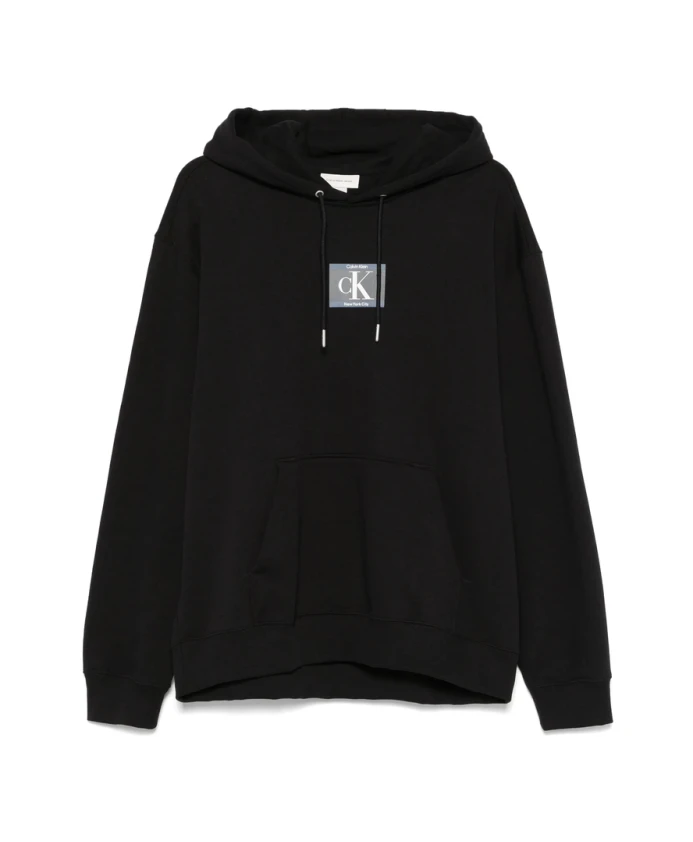Черная толстовка с капюшоном и карманом Calvin Klein, черный