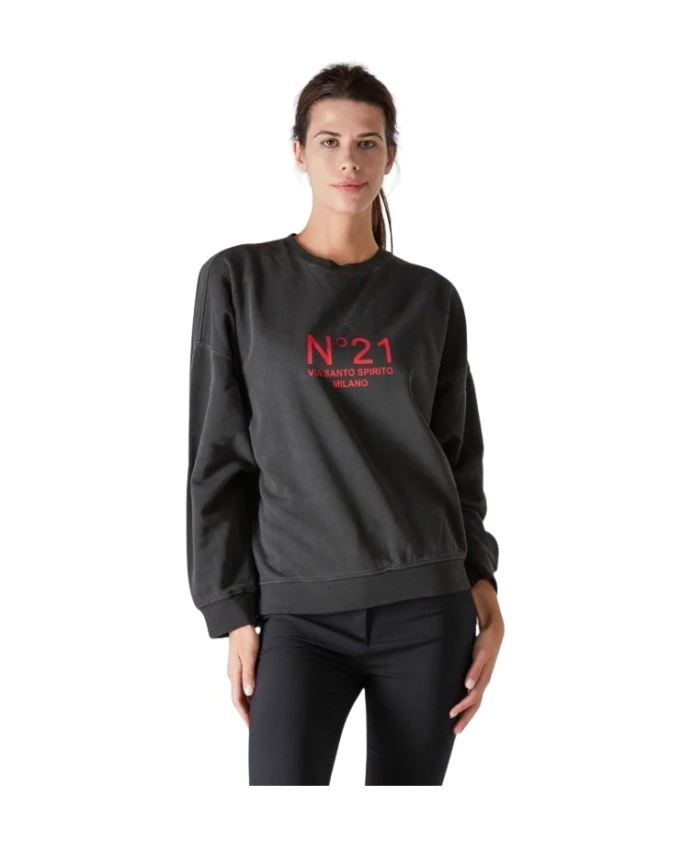 Подчеркните свой повседневный стиль с помощью этой черной толстовки N°21 Donna. Изготовленная из 100% хлопка, она станет идеальным дополнением к вашему гардеробу.