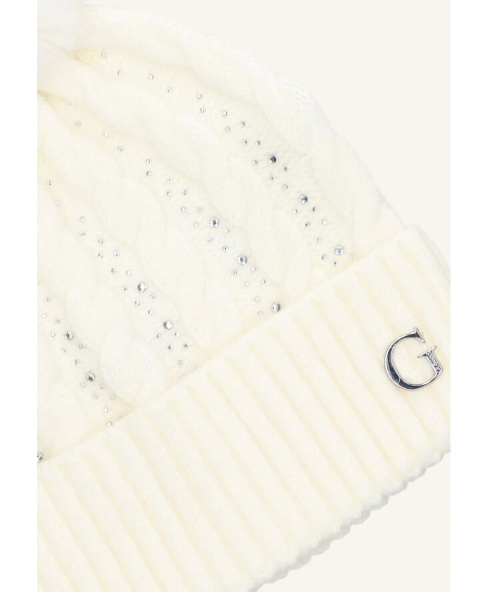 Вязаная шапка GUESS с помпоном сочетает в себе вязаную конструкцию с деталями из страз и логотипа, создавая стильный аксессуар для холодной погоды. Помпон сверху добавляет игривости, идеально подходящий для бодрых прогулок и многослойной одежды на каждый день. Ключевые особенности: Белый | Кремовый | Акрил | Аппликация с помпоном | Детали с логотипом | Аппликация со стразами | Вязаная конструкция | Состав и уход: 42% акрил | 30% полиэстер | 28% полиамид/нейлон | Ручная стирка.