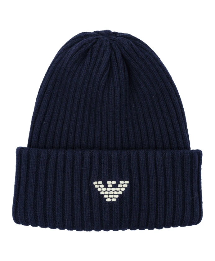 Шерстяная шапка в рубчик Emporio Armani, синий