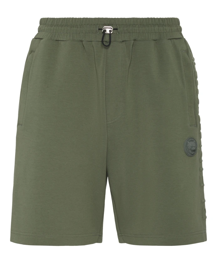 Спортивные шорты Plein Sport сочетают в себе комфорт хлопкового флиса и спортивные детали, подходящие как для тренировок, так и для повседневной носки. Практичные элементы, такие как эластичный пояс со шнурком и карманы на молнии, способствуют активному использованию. Ключевые особенности: Зеленый | Военный стиль | Хлопковый флис | Подходит для тренировок | Ориентированы на комфорт | Эластичный пояс со шнурком | Боковые карманы на молнии | Рельефная надпись на левой штанине | Прорезиненная нашивка с логотипом