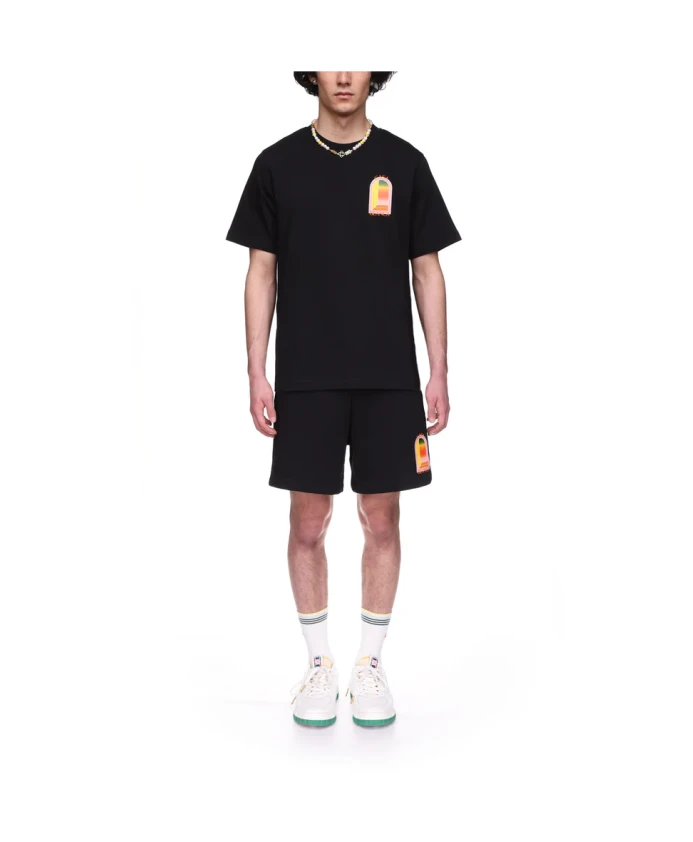 Подчеркните свой повседневный стиль с помощью этих черных спортивных шорт Casablanca 'Gradient L'Arche', изготовленных из 100% хлопка. Они украшены градиентным узором в виде арки на одной штанине, имеют регулируемый пояс на шнурке и задний карман.