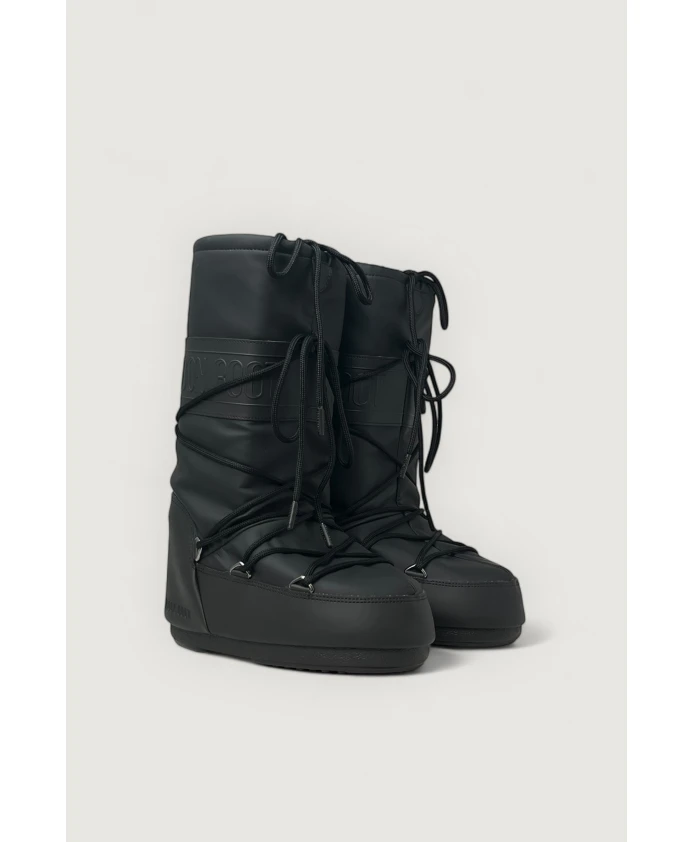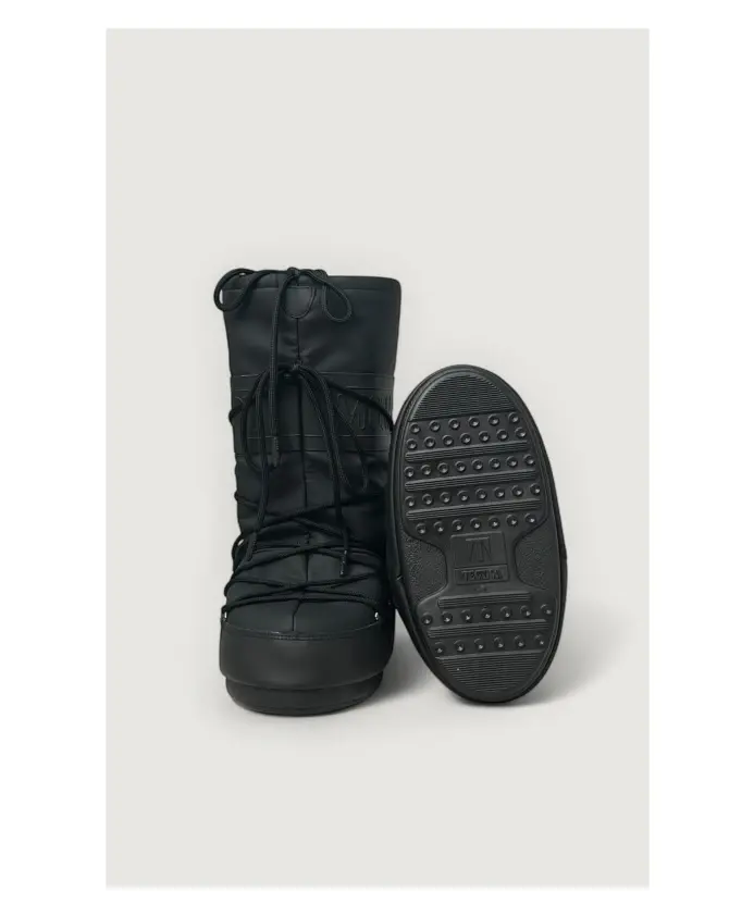Бренд: Moon Boot Цвет: черный Материалы: 42% полиэстер, 30% пвх, 28% полиуретан | отделка: 100% пвх | подкладка: 100% полиэстер | подошва: 100% термопластичная резина | внешняя подошва: 100% резина удалите грязь мягкой сухой щеткой. для удаления пятен используйте мягкую влажную ткань с мягким моющим средством и водой. протрите подошву и внешнюю подошву мягкой щеткой, мягким моющим средством и водой. дайте высохнуть при комнатной температуре. декоративные шнурки предназначены только для эстетических целей и не должны затягиваться или сниматься.