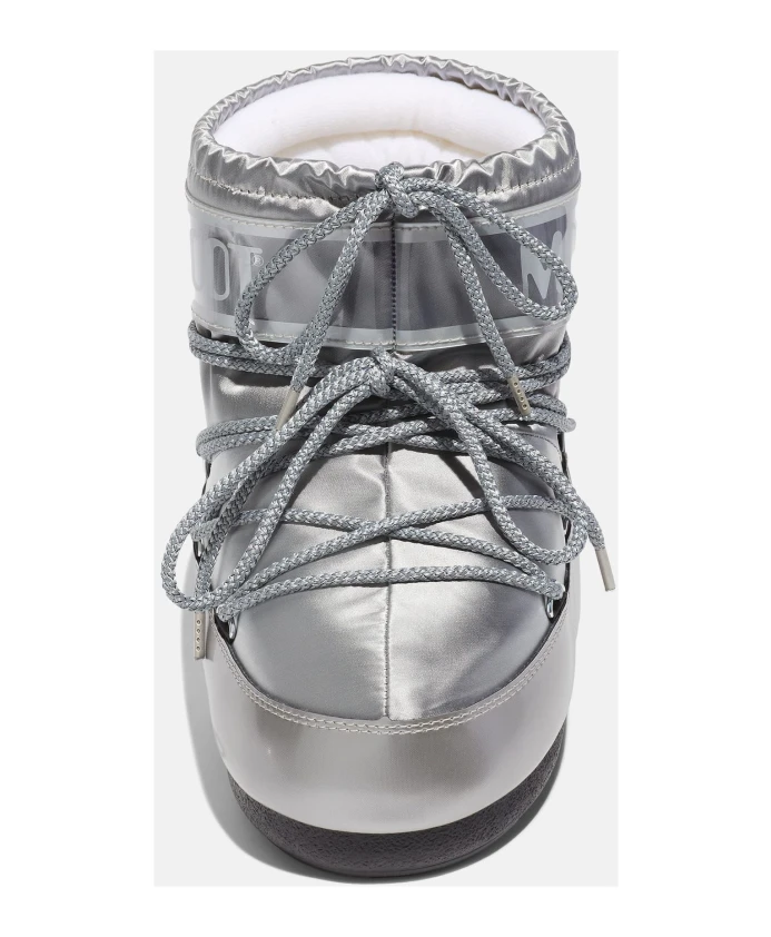 Ботинки Moon Boot Icon Low Glance сочетают в себе утепленную многоразмерную подкладку из пеноматериала и цепкую резиновую подошву, обеспечивая тепло и надежную фиксацию ног в зимних условиях. Низкий атласный профиль и удобная конструкция делают их подходящими для повседневной зимней носки и прогулок по снегу. Ключевые особенности: Серый | Атлас | Утепленная подкладка из пеноматериала для тепла | Нескользящая резиновая подошва | Водоотталкивающее покрытие | Конструкция без шнурков | Регулируемый шнурок сверху | Многоразмерная подкладка из пеноматериала | Подходят для обеих ног (нет фиксированной левой/правой стороны) | Задник и отделка из ПВХ | Перекрещенные трубчатые шнурки (декоративные) | Лента с логотипом. Размеры и посадка: Многоразмерная посадка - подкладка из пеноматериала адаптируется к различным размерам стопы. | Рекомендуется выбрать на один размер больше, если вы находитесь между размерами. | Низкопрофильный силуэт ботинок без шнурков. | Состав и уход: 30% нейлон | 30% полиэстер | 40% ПВХ | Манжеты: 100% ПВХ | Подкладка: 100% полиэстер | Подошва: 100% термопластичная резина (TR) | Внешняя подошва: 100% резина | Удалите рыхлую грязь мягкой сухой щеткой. Протрите пятна влажной тканью с мягким моющим средством. Почистите подошву и промежуточную подошву мягкой щеткой. Высушите на воздухе при комнатной температуре; избегайте прямого воздействия тепла.