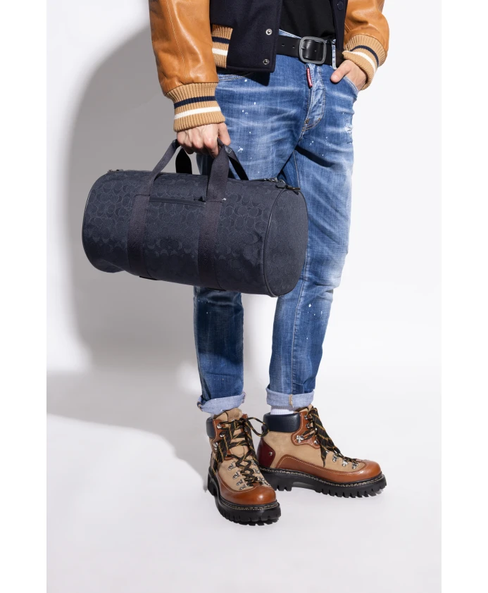 Практичная сумка «THEO» от COACH - исключительный выбор для мужчин, ценящих сочетание изысканного стиля и функциональности. Она очаровывает своим удлиненным цилиндрическим силуэтом дорожной сумки, гармонично сочетающим практичность и безупречную эстетику. Универсальный темно-синий цвет и тонкий, регулярный узор с эмблематическим мотивом «C» подчеркивают утонченный характер этого изделия. Высококачественный текстильный материал обеспечивает как легкость, так и долговечность, а ненавязчиво интегрированный логотип COACH на ручках и плечевом ремне подчеркивает ее оригинальность и принадлежность к эксклюзивной линии. Металлические элементы дополняют общий элегантный вид и подчеркивают мастерство и точность исполнения. Функциональность повышается благодаря двум удобным ручкам и съемному регулируемому плечевому ремню с мягкой вставкой для дополнительного комфорта в любой ситуации. ПОЧЕМУ СТОИТ ВЫБРАТЬ ЭТОТ ИЗДЕЛИЕ? * Эксклюзивный дизайн от известного бренда Coach * Прочные материалы и безупречное качество изготовления * Универсальное использование - идеально подходит для путешествий и занятий спортом * Уникальные детали, подчеркивающие престиж * Комфорт в ношении благодаря продуманной конструкции Высота: 22 см Ширина: 41 см Параметры модели Рост: 185 см Обхват груди: 92 см Обхват талии: 74 см Обхват бедер: 91 см