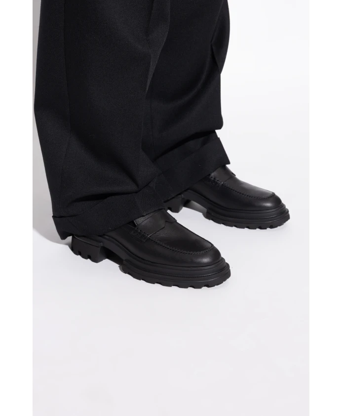 Женские кожаные лоферы HOGAN воплощают в себе суть изысканной элегантности в форме современного минимализма. Классический силуэт со слегка удлиненной формой и закругленным носком придает обуви утонченную, но гармоничную линию, идеально подходящую для современной женщины, которая ценит комфорт и изысканный дизайнерский стиль. Верх лоферов выполнен из высококачественной гладкой натуральной кожи глубокого черного цвета. Подкладка также отделана кожей, что обеспечивает исключительный комфорт. Массивная резиновая подошва на платформе и тщательная прострочка подчеркивают выдающееся мастерство, сохраняя при этом чистую, минималистичную форму, подчеркнутую лишь ненавязчивым ремешком на подъеме. Незаметный логотип дизайнера на стельке является свидетельством мастерства и престижа. ПОЧЕМУ ВЫБРАТЬ ЭТОТ ТОВАР? * Исключительно тонкая натуральная кожа - гарантирующая долговечность и комфорт. * Элегантный, универсальный дизайн, дополняющий различные наряды. * Прочная резиновая подошва для комфорта и устойчивости в течение всего дня. * Внимание к деталям и едва заметный логотип дизайнера. * Изделие для женщин, которые ценят эксклюзивность и вневременную классику. Высота подошвы: 3,2 см. Высота подошвы в самой высокой точке: 5,5 см. Обувь Hogan обычно большемерит. Рекомендуется заказывать на один размер меньше.