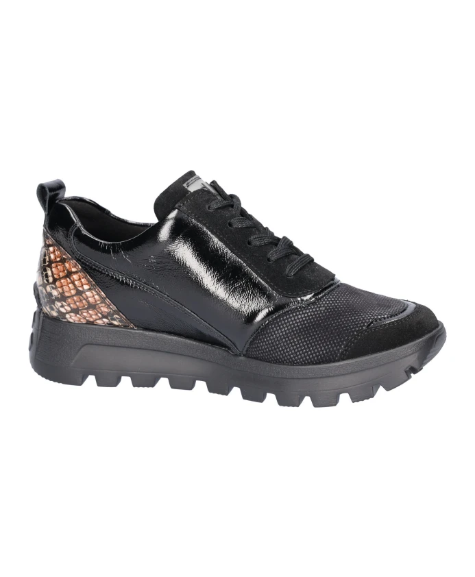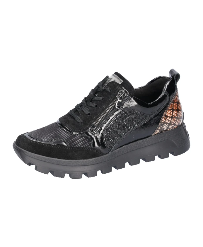 Кроссовки Waldläufer H-Ajala сочетают в себе верх из комбинированных материалов и удобство надевания и снимания для повседневного комфорта и поддержки. Разработанные для ношения в течение всего дня, эти кроссовки имеют легкую подошву и съемную стельку для индивидуальной подгонки. Ключевые особенности: Черный | Черный моро | Лакированная кожа, текстиль, замша | Легкая, гибкая подошва из ЭВА | Дышащая подкладка из микрофибры | Обработанная кожа для водоотталкивающих свойств | Боковая молния для удобного надевания и снимания | Шнуровка для регулируемой посадки | Съемная стелька (позволяет использовать ортопедические вставки) | Эластичные вставки в передней части стопы для дополнительного комфорта | Низкий силуэт | Круглый носок | Панели из комбинированных материалов (лакированная кожа, замша, текстиль) | Легкий блеск благодаря панелям из лакированной кожи | Размер и посадка: Комфортная ширина H (широкая посадка) | Состав и уход: Верх: Лакированная кожа, замша, текстиль | Подкладка: Микрофибра | Подошва: ЭВА | Стелька: Съемная (материал может отличаться) | Чистите замшу щеткой для замши или ластиком; избегайте воды и жира. Используйте защитный спрей, подходящий для кожи и замши. Протрите лакированную кожу влажной тканью и дайте ей высохнуть на воздухе. Перед чисткой выньте стельки.