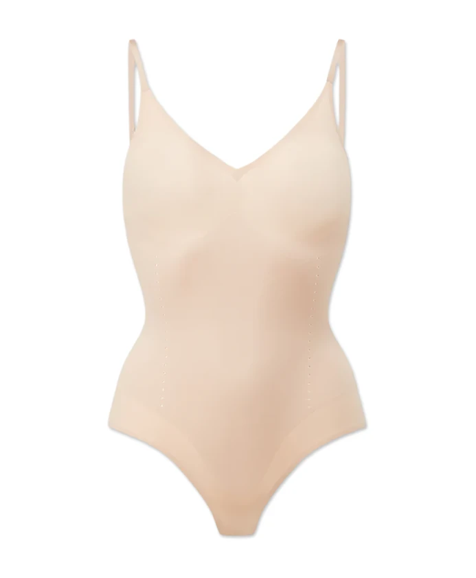 Боди Sculpt Perforated Outer Bodysuit от Heist Studios сочетает в себе целенаправленную компрессию и дышащую перфорацию для придания формы и поддержки талии, живота и груди. Носите его как бесшовный базовый слой или сочетайте с брюками с высокой талией для создания скульптурного силуэта. Ключевые особенности: Бежевый | Полиамид | Высокая степень компрессии | Дышащая ткань | Улучшенная вентиляция | Встроенные чашечки | Регулируемые бретели | Регулируемая застежка на кнопках | Ластовица на хлопковой подкладке | Глубокий V-образный вырез | Незаметный вырез сзади | Перфорированные вставки на талии | Гладкая, бесшовная отделка | Сатиновый блеск | Размеры и посадка: Рост модели: 176 см | Обхват груди модели: 85 см | Обхват талии модели: 60 см | Обхват бедер модели: 89 см | Модель носит размер: 12 | Формирующая посадка, как вторая кожа | Регулируемые бретели для индивидуальной подгонки | Состав и уход: 80% полиамид, 20% эластан | Ластовица: подкладка из 100% хлопка | Рекомендуется ручная стирка; или машинная стирка в холодной воде (30°C) в щадящем режиме с вещами аналогичного цвета. Сушить в подвешенном состоянии. Не отбеливать, не сушить в сушильной машине, не гладить и не подвергать химчистке. Избегайте источников тепла, которые могут повредить вставки.