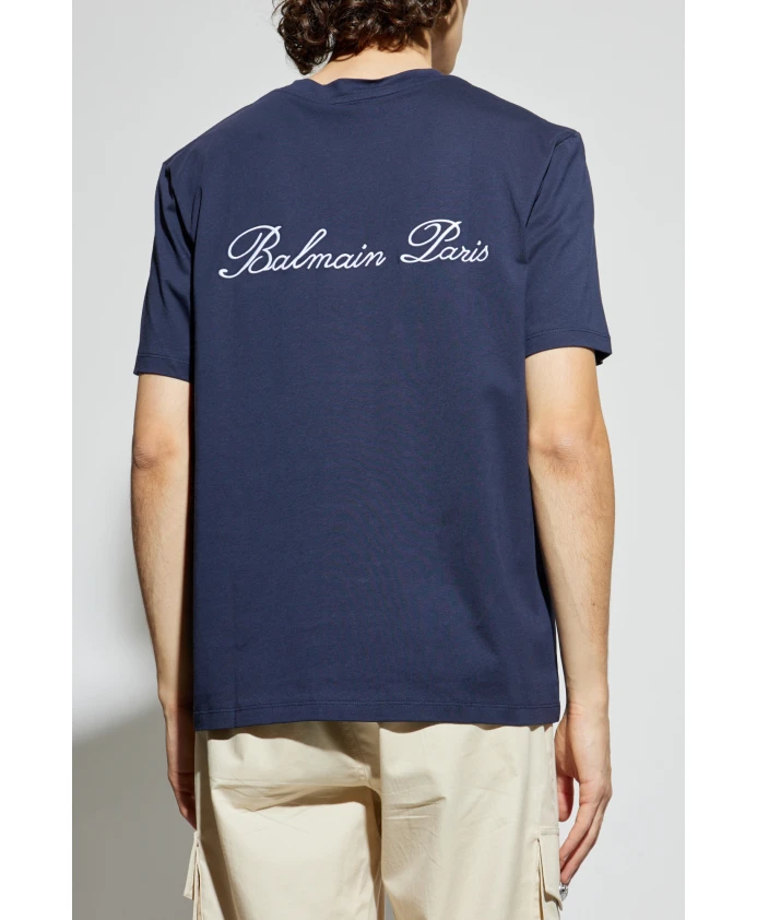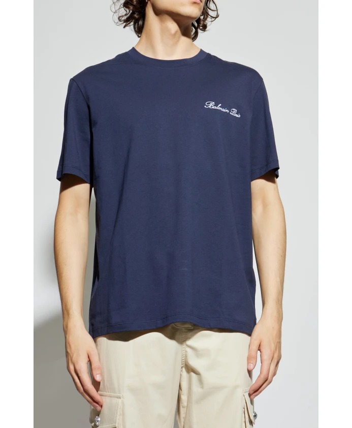 Футболка с вышитым логотипом Balmain, синий