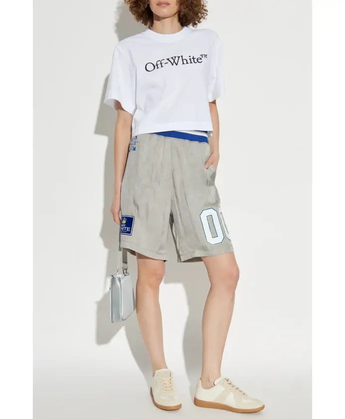 Шорты с принтом от Off-White - это уникальный вариант для женщин, желающих выразить свой индивидуальный стиль с ноткой современной элегантности. Спортивный дизайн отражен в свободном крое с широкими штанинами, которые доходят до колена, обеспечивая абсолютный комфорт и свободу движений. Роскошная, мягкая ткань с легким блеском и заметной текстурой дарит ощущение премиум-класса на коже. Доминирующий серый цвет служит идеальным фоном для смелого белого принта «00» в сине-желтой окантовке, а также для эффектной нашивки «WHITE», которая подчеркивает тесную связь изделия с современной городской культурой. Уникальность этих шорт дополнительно подчеркивается тонкой деталью на бедре, придающей всей модели неповторимый характер. Дизайн от Off-White - бренда, вдохновленного искусством, индивидуальностью и разрушением стереотипов. ПОЧЕМУ СТОИТ КУПИТЬ ЭТОТ ТОВАР? * Инновационное сочетание спортивного стиля и элегантности. * Престиж всемирно известного бренда и дизайнера. * Эксклюзивная отделка: уникальные принты и детали. * Роскошная, мягкая ткань для комфортного ношения. * Идеально подходит для повседневной носки и особых случаев. Параметры модели: Рост: 177 см, Обхват груди: 83 см, Обхват талии: 61 см, Обхват бедер: 89 см. Модель носит размер: 40