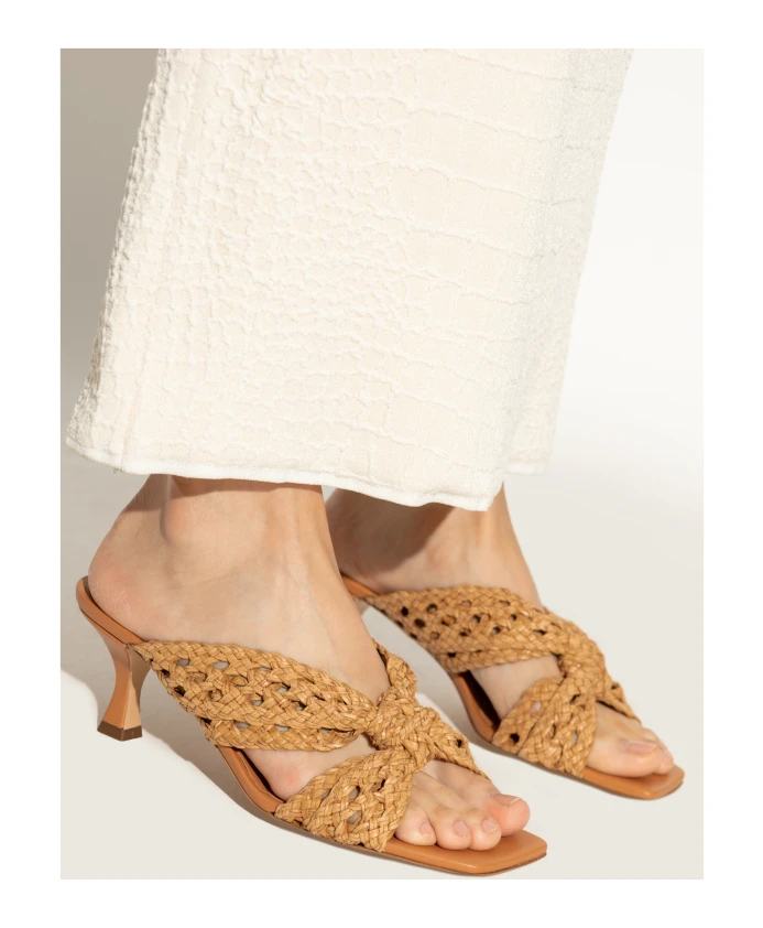 Откройте для себя необыкновенное очарование мюлей из эксклюзивной коллекции CASADEI. Эти изысканные сандалии излучают элегантность, а их плетеный верх с перекрещивающимися ремешками придает им неповторимый стиль. Изготовленные из высококачественной кожи, они имеют натуральный коричневый оттенок, который ненавязчиво дополнит любой наряд. Фирменный каблук средней высоты обеспечивает комфорт, а открытый дизайн с открытыми пальцами добавляет легкости и свежести. Логотип дизайнера «CASADEI» гордо красуется на стельке, подчеркивая их уникальный и эксклюзивный характер. Эти сандалии - идеальный выбор для летних дней, как для повседневной носки, так и для особых случаев, сочетая в себе изысканную эстетику и комфорт. Casadei, бренд с историей, восходящей к 1958 году, известен своими инновационными материалами и уникальной эстетикой, что делает эти сандалии поистине роскошным аксессуаром. ПОЧЕМУ СТОИТ КУПИТЬ ЭТОТ ТОВАР? * ЭЛЕГАНТНОСТЬ в сочетании с современным дизайном. * ВЫСОКОКАЧЕСТВЕННОЕ МАСТЕРСТВО с использованием эксклюзивной кожи. * Универсальный цвет, идеально сочетающийся со многими нарядами. * Комфорт благодаря каблуку средней высоты. * Эксклюзивный дизайн, подтвержденный логотипом "CASADEI". Высота каблука: 7 см. Высота подошвы: 1 см.