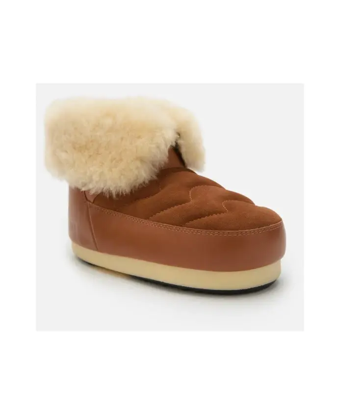 Ботинки Moon Boot EVX Igloo сочетают в себе стеганые замшевые накладки и откидную манжету с подкладкой из овчины для теплой повседневной зимней носки. Разработанные для сцепления и комфорта, они подходят как для городской носки в холодную погоду, так и для повседневных приключений на открытом воздухе. Ключевые особенности: Коричневый | Коньячный | Замша и овчина | Легкая термопластичная промежуточная подошва | Подошва из термопластичной резины с присосками для дополнительного сцепления | Конструкция без шнурков | Подходит для обеих рук (без разделения на левую и правую) | Многоразмерная подкладка из пеноматериала | Стеганый/волнистый узор швов | Откидная манжета с застежкой-фиксатором | Логотип на пятке | Размеры и посадка: Адаптивная многоразмерная подкладка из пеноматериала, которая принимает форму стопы. Рекомендуется выбирать на один размер больше для этой модели (например, EU 38 → EU 39-41). | Состав и уход: Верх: 51% замша из коровьей кожи, 49% овчина | Подкладка: 100% овчина | Подошва: 100% термопластичная резина | Смахните грязь щеткой; пятна удалите мягкой влажной тканью с мягким моющим средством; не погружайте в воду; промокните насухо и дайте высохнуть на воздухе при комнатной температуре; храните в защитном мешочке.