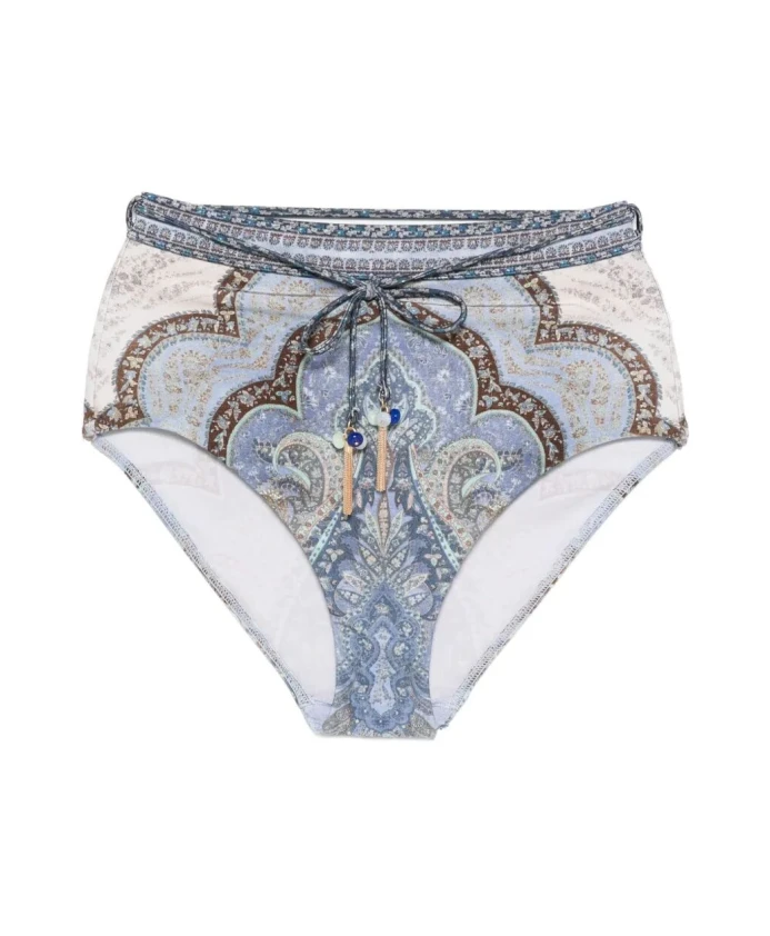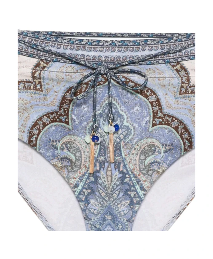 Трусики-бикини Wanderlust High Waist Pant от Zimmermann - это модель с высокой посадкой из коллекции Resort Swim 2026, обеспечивающая полное покрытие, с глянцевой, облегающей фигуру отделкой и съемным поясом с петлями. Основные характеристики: Разноцветные | Синий гобелен | Полиамид | Глянцевая отделка | Облегающая фигуру | На подкладке | Полное покрытие ягодиц | Эластичная ткань | Съемный пояс с петлями | Пояс на завязках с фиксаторами | Высокая посадка | Высокая талия | Размеры и посадка: Соответствует размеру | Облегающая фигуру, высокая талия | Состав и уход: 80% полиамид, 20% эластан | 92% нейлон, 8% эластан | Ручная стирка в холодной воде отдельно с мягким моющим средством; Не использовать кондиционер для белья; полоскать сразу после использования; не сворачивать во влажном состоянии; снять все съемные элементы перед стиркой; сушить в тени; не отбеливать и не гладить; не сушить в сушильной машине; Не подвергать химчистке; светлые цвета могут быть прозрачными во влажном состоянии; избегать контакта с солнцезащитными кремами, маслами, шероховатыми поверхностями, а также с бассейнами и спа-салонами с высокой температурой воды; всегда сверяйтесь с этикеткой или инструкцией по уходу для получения конкретных указаний.