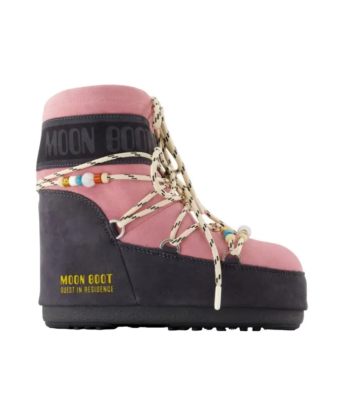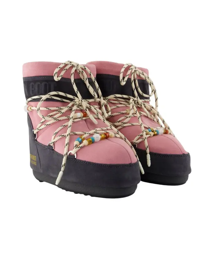 Ботильоны Moon Boot Icon Low, созданные в сотрудничестве с Guest In Residence, сочетают в себе объемный комфорт Moon Boot с замшей с цветными блоками и бисером, создавая модные и функциональные ботильоны, идеально подходящие для повседневной носки. Ключевые особенности: Серый | Розовый | Замша из телячьей кожи | Адаптивная подкладка из пеноматериала разных размеров | Подошва из термопластичной резины | Конструкция без застежек | Перекрещивающиеся трубчатые шнурки | Металлические люверсы | Подкладка из пеноматериала разных размеров | Бисероплетение | Замшевые вставки с цветными блоками | Круглый носок | Фирменный логотип сотрудничества | Контрастные шнурки. Размеры и посадка: Размеры Moon Boot - мы рекомендуем выбирать на один размер больше; подкладка из пеноматериала разных размеров адаптируется к стопе для надежной и комфортной посадки. | Состав и уход: Верх: 100% замша из коровьей кожи | Подкладка: 92% полиэстер, 8% полиуретан | Подошва: 100% термопластичная резина | Удаляйте грязь мягкой сухой щеткой. Пятна следует удалять влажной тканью с использованием мягкого моющего средства или шампуня; не погружайте в воду. Дайте высохнуть при комнатной температуре. Избегайте использования водоотталкивающих спреев.