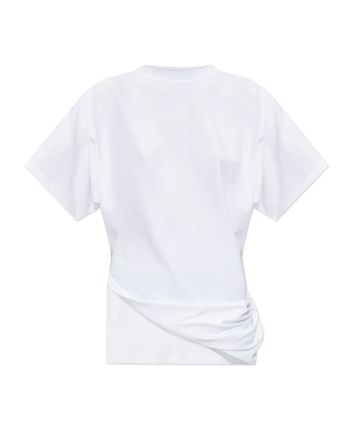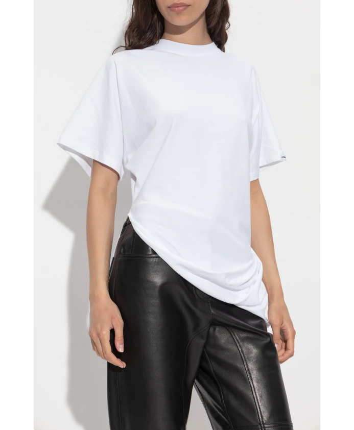 Футболка KERAS из эксклюзивной линии SPORTMAX - это воплощение современной элегантности, скрытое в простой минималистичной белой форме. Классический, слегка свободный крой с короткими рукавами, слегка асимметричным низом и мягкими складками на бедрах органично сочетает в себе вневременной стиль и современный штрих. Изготовленная с высочайшей точностью из высококачественной, идеально гладкой ткани, эта футболка мягкая и слегка эластичная, обеспечивая ощущение роскошного комфорта. Вся футболка лишена принтов и графических элементов, что естественным образом подчеркивает изысканность дизайна. Металлическая деталь в виде ювелирного украшения на задней части воротника создает тонкий, но эффектный акцент и служит визитной карточкой бренда. ПОЧЕМУ СТОИТ КУПИТЬ ЭТОТ ТОВАР? * Минималистичный дизайн для разнообразных вариантов стилизации * Шикарный асимметричный крой, отличающийся едва заметными складками * Исключительно мягкий и эластичный материал для комфортного ношения * Изысканные детали - элегантный акцент в виде ювелирных украшений на спине * Итальянское наследие и инновации, подтвержденные Sportmax Параметры модели Рост: 176 см Обхват груди: 85 см Обхват талии: 60 см Обхват бедер: 89 см Модель носит размер: S