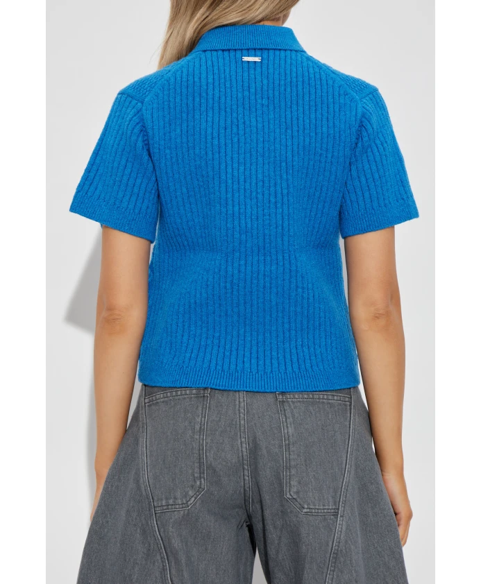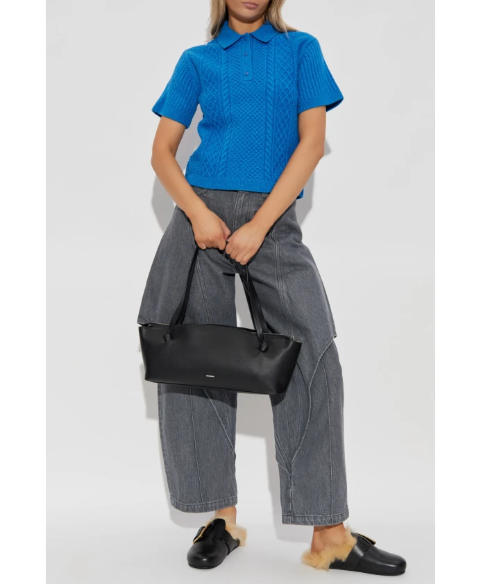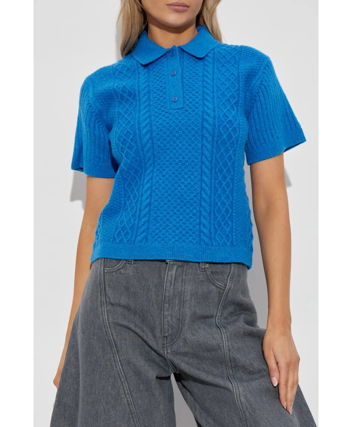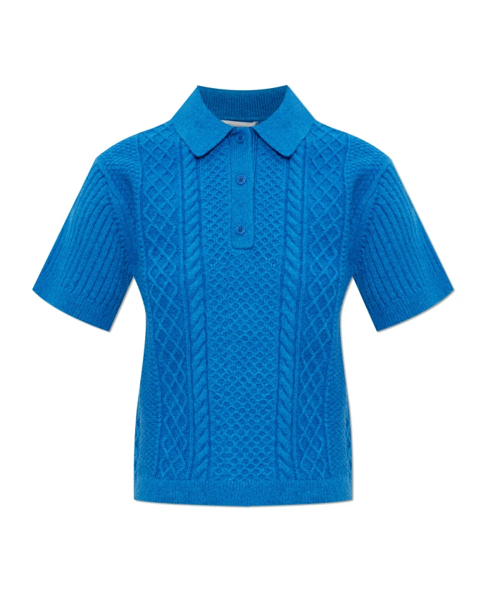 Топ с воротником от JW ANDERSON - это изделие, в котором изысканная эстетика сочетается с тонким, неожиданным очарованием. Доминирующий глубокий синий оттенок подчеркивает сдержанную элегантность, а классический, слегка свободный крой дополняют короткие рукава, доходящие до талии или чуть ниже. К отличительным чертам относятся характерный воротник-поло и замысловатые узоры вязания в виде кос, которые привлекают внимание и подчеркивают эксклюзивность изделия. Ткань отличается мягкостью и прочностью благодаря тщательно подобранному трикотажу с добавлением шерсти и кашемира, что обеспечивает исключительный комфорт. Особое внимание уделено деталям - сдержанная застежка на три пуговицы, которая дополняет цвет ткани, подчеркивает изысканное мастерство и вневременную классику. ПОЧЕМУ СТОИТ КУПИТЬ ЭТОТ ИЗДЕЛИЕ? * Исключительная интерпретация классического кроя от известного дизайнера * Высококачественный трикотаж, гарантирующий комфорт и долговечность * Уникальные узоры плетения и детали, подчеркивающие индивидуальный стиль * Предложение вневременной элегантности в современном исполнении. Параметры модели: Рост: 176 см, Обхват груди: 85 см, Обхват талии: 60 см, Обхват бедер: 89 см. Модель носит размер: S.
