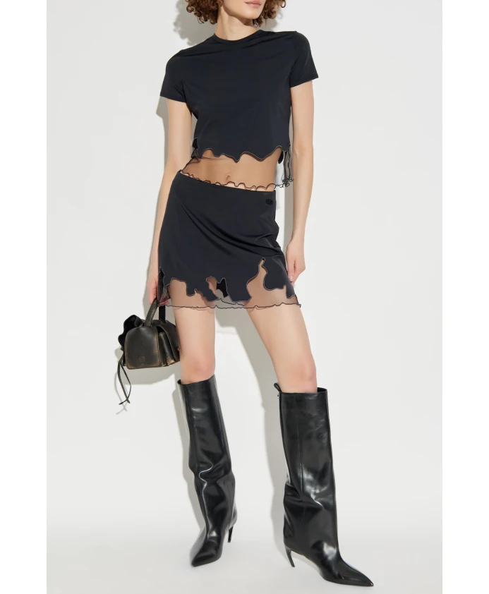 Футболка T-INLAY-R1 от Diesel - это воплощение утонченной эксклюзивности и изысканного мастерства. Эта модель очаровывает своей простой формой: слегка свободный крой, короткие рукава и классический круглый вырез. Интригующий укороченный силуэт подчеркивает талию и придает фигуре исключительную легкость. Внимание привлекает эффектная отделка - неровный, волнистый край из прозрачной сетки создает уникальный эффект «обожженного» края. Однородный, глубокий черный цвет и отсутствие видимых принтов подчеркивают утонченный минимализм дизайна. Футболка изготовлена из высококачественной, гладкой ткани, обеспечивающей комфорт и эксклюзивный вид. Завершает образ современный, авангардный дух Diesel - легендарного итальянского бренда, известного своими инновациями и бескомпромиссным мастерством. ПОЧЕМУ СТОИТ КУПИТЬ ЭТОТ ТОВАР? * Оригинальная волнистая отделка с прозрачной сеткой * Элегантные, прочные материалы для комфортного ношения * Уникальный укороченный дизайн, подчеркивающий талию * Творение известного модного дома Diesel * Изысканное мастерство, подчеркивающее ваш индивидуальный стиль Параметры модели Рост: 176 см Обхват груди: 85 см Обхват талии: 60 см Обхват бедер: 89 см Модель носит размер: S