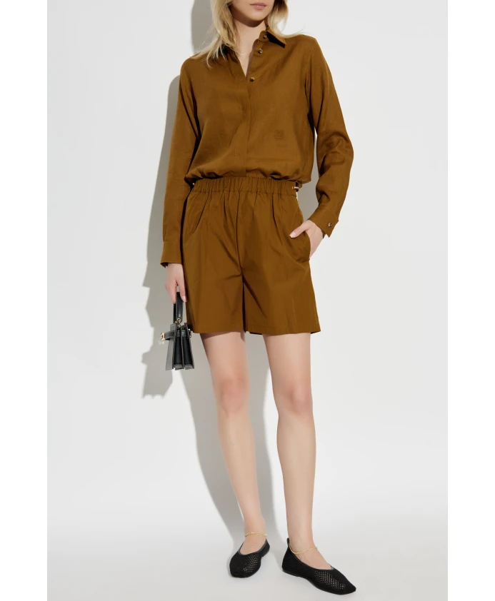 Представляем вашему вниманию шорты с карманами от известного модного дома Max Mara - воплощение элегантности и комфорта. Изготовленные из высококачественного хлопка, они отличаются легкостью и воздухопроницаемостью, что делает их идеальным выбором для теплых дней. Эти коричневые шорты впечатляют своим простым, свободным кроем, достигающим середины бедра, что создает современный, повседневный стиль. Эластичный пояс со сдержанным белым шнурком, продетым через металлическую люверсу, не только практичен, но и служит элегантным акцентом. Боковые карманы повышают функциональность, делая их идеальным выбором для различных случаев. Основанный в 1951 году, Max Mara является синонимом роскоши и качества. Опираясь на свое итальянское наследие, компания неизменно сочетает комфорт и эстетику, предлагая культовые и вневременные продукты. ПОЧЕМУ СТОИТ КУПИТЬ ЭТОТ ТОВАР? * Изготовлены из 100% хлопка, гарантирующего исключительный комфорт. * Универсальный стиль, подходящий для различных случаев. * Изысканные детали добавляют элегантности. * Гарантия высокого качества от Max Mara. Параметры модели: Рост: 176 см, Обхват груди: 85 см, Обхват талии: 60 см, Обхват бедер: 89 см. Модель носит размер: 38.