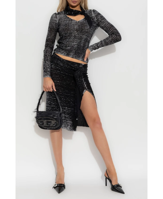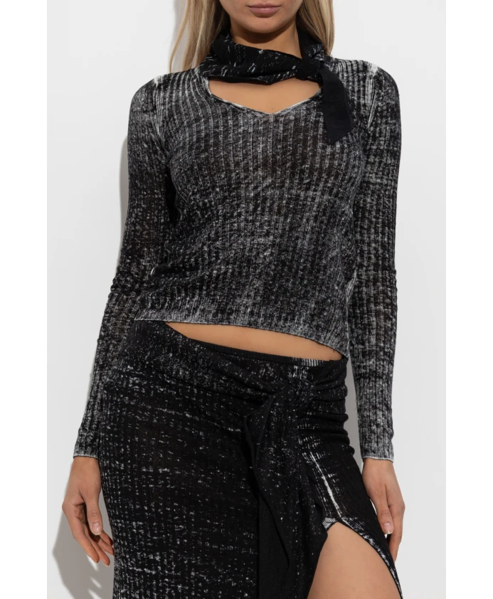 Топ M-ELAN - уникальное предложение для ценителей изысканной моды от известного бренда Diesel. Облегающий, слегка приталенный силуэт с длинными рукавами подчеркивает фигуру, а современный вырез горловины - асимметричная форма с эффектным каплевидным вырезом и изящной отделкой в виде шарфа - привлекает внимание и выделяет неповторимый характер изделия. Изготовленный из высококачественного льна и украшенный ребристой вязкой бархатистой, мятой отделкой, этот топ очаровывает своей элегантностью и легкостью. Прозрачная серая ткань с потрясающим меланжевым эффектом, украшенная неравномерными черными и более светлыми акцентами, визуально удлиняет силуэт. Фирменный красный логотип Diesel ненавязчиво подтверждает эксклюзивность изделия. ПОЧЕМУ СТОИТ ВЫБРАТЬ ЭТОТ ТОВАР? * Уникальный крой и современный асимметричный вырез горловины со встроенным шарфом. * Изготовлен из высококачественного льна с художественной текстурой. * Визуально стройнит фигуру благодаря ребристой отделке и меланжевому узору. * Незаметный внутренний логотип, подтверждающий подлинность и эксклюзивность. Параметры модели: Рост: 176 см, Обхват груди: 85 см, Обхват талии: 60 см, Обхват бедер: 89 см. Модель носит размер: S