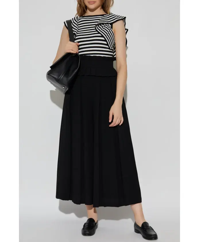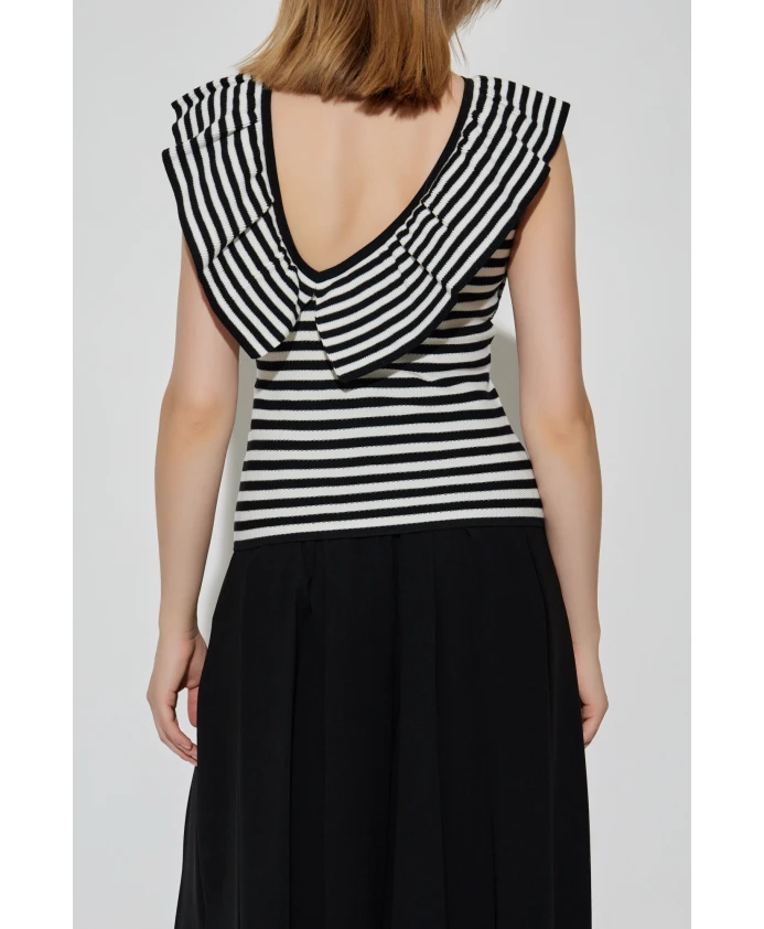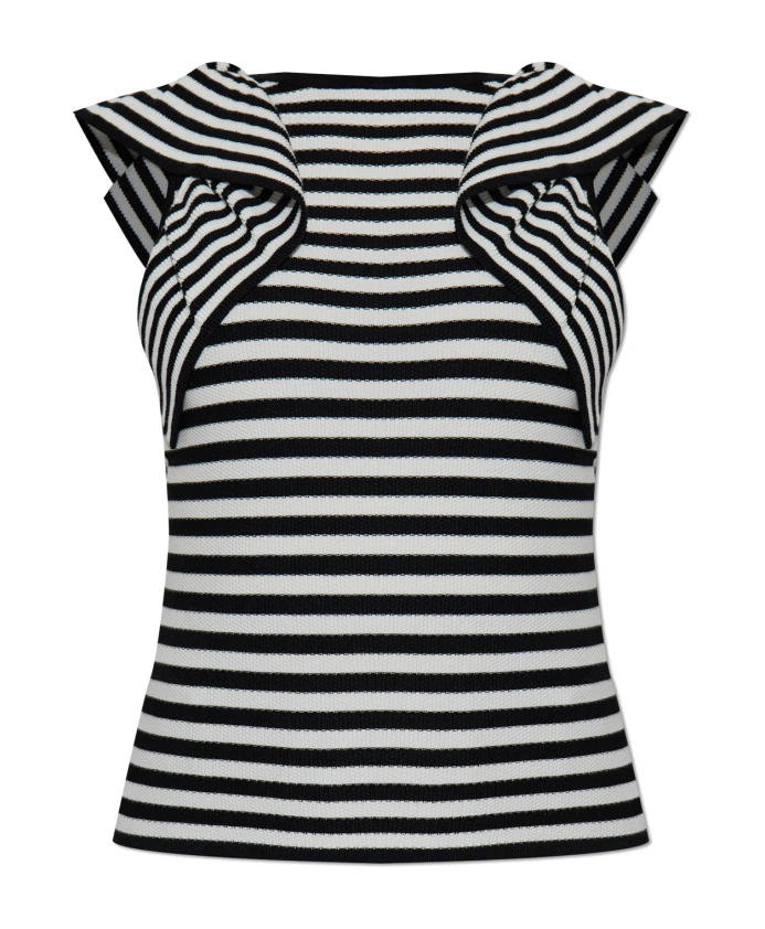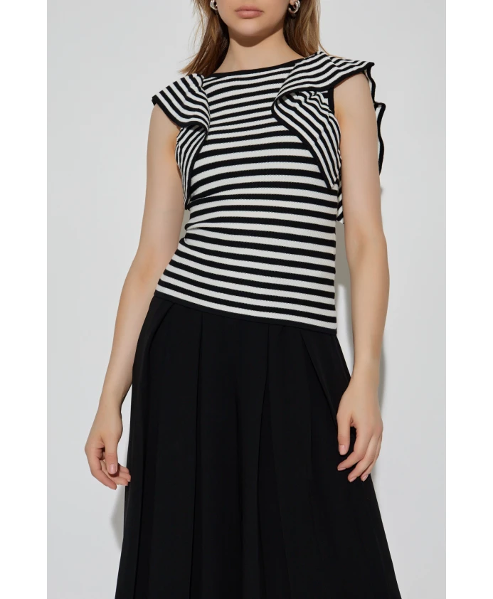 Топ без рукавов «VIESTE» создан для женщин, ценящих утонченную простоту и мастерство итальянского дизайна. Его изящный силуэт мягко подчеркивает фигуру, а эффектные волнистые оборки на плечах придают изделию уникальный дизайнерский шарм. Гармоничное сочетание контрастных черно-белых полос сразу привлекает внимание и идеально дополняет отчетливую ребристую текстуру трикотажной ткани - материала, тщательно подобранного для комфорта и легкости. Образ завершает глубокий V-образный вырез на спине, деликатно подчеркнутый широкой оборкой. Топ «Vieste» - это воплощение современной элегантности, созданное известным модным домом MAX MARA, где внимание к каждой детали и высочайшее качество исполнения всегда являются приоритетами. ПОЧЕМУ СТОИТ КУПИТЬ ЭТОТ ТОВАР? * Выразительный крой с уникальными широкими оборками на плечах * Контрастные черно-белые полосы, подчеркивающие характер изделия * Эластичная ребристая трикотажная ткань для комфортной носки * Глубокий V-образный вырез с эффектной отделкой * Изделие от известного бренда Max Mara, синонима качества и роскоши. Параметры модели: Рост: 177 см, Обхват груди: 83 см, Обхват талии: 61 см, Обхват бедер: 89 см. Модель носит размер: S