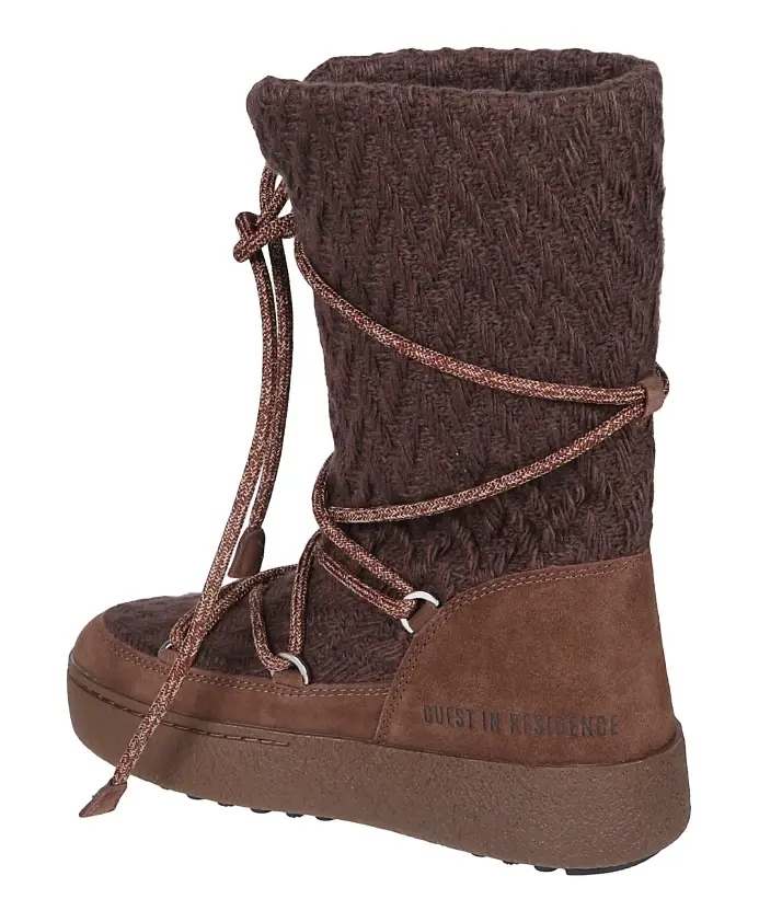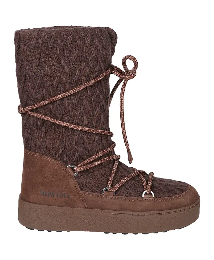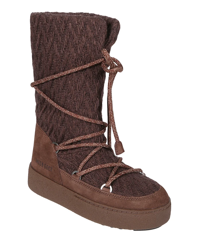 Бренд: Moon Boot Цвет: коричневый Материалы: верх: 36% шерсть, 36% акрил, 28% кожа | подкладка: 100% полиэстер | подошва: 100% термопластичная резина удалите грязь мягкой сухой щеткой. для удаления пятен используйте мягкую влажную ткань с мягким моющим средством и водой. очистите межподошву и внешнюю подошву мягкой щеткой с мягким моющим средством. дайте высохнуть при комнатной температуре. храните в защитном мешочке. не используйте водоотталкивающие или аэрозольные средства для обработки изделий moon boot.