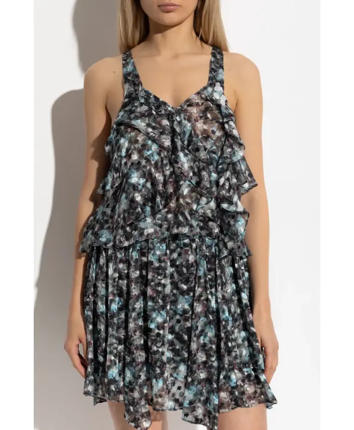 Топ RAJAE от известного модного дома Iro очаровывает своей утонченной, художественной формой, вдохновленной динамичным духом парижской элегантности. Свободный, воздушный силуэт дополняют широкие бретели и слегка расклешенный подол, гармонично сочетающийся с многослойными оборками, чувственно подчеркивая легкость композиции. Изделие привлекает внимание своим импрессионистским акварельным принтом, в котором преобладают оттенки синего с акцентами черного, белого и нежно-бордового. Ткань, воплощающая чистую изысканность, напоминает шифон или органзу - ее полупрозрачность тонко отражает свет, усиливая объемность цветов и подчеркивая эксклюзивность творения. Логотип дизайнера интерьеров на вырезе горловины завершает образ утонченной подписью. ПОЧЕМУ СТОИТ ВЫБРАТЬ ЭТОТ ТОВАР? * Исключительная легкость и воздухопроницаемость благодаря высококачественным материалам * Уникальный художественный принт, вдохновленный импрессионизмом * Оборки придают изделию неповторимый характер и утонченную элегантность * Воплощение роскошного дизайна Iro, вдохновленного духом Парижа Параметры модели Рост: 176 см Обхват груди: 85 см Обхват талии: 60 см Обхват бедер: 89 см Модель носит размер: 36