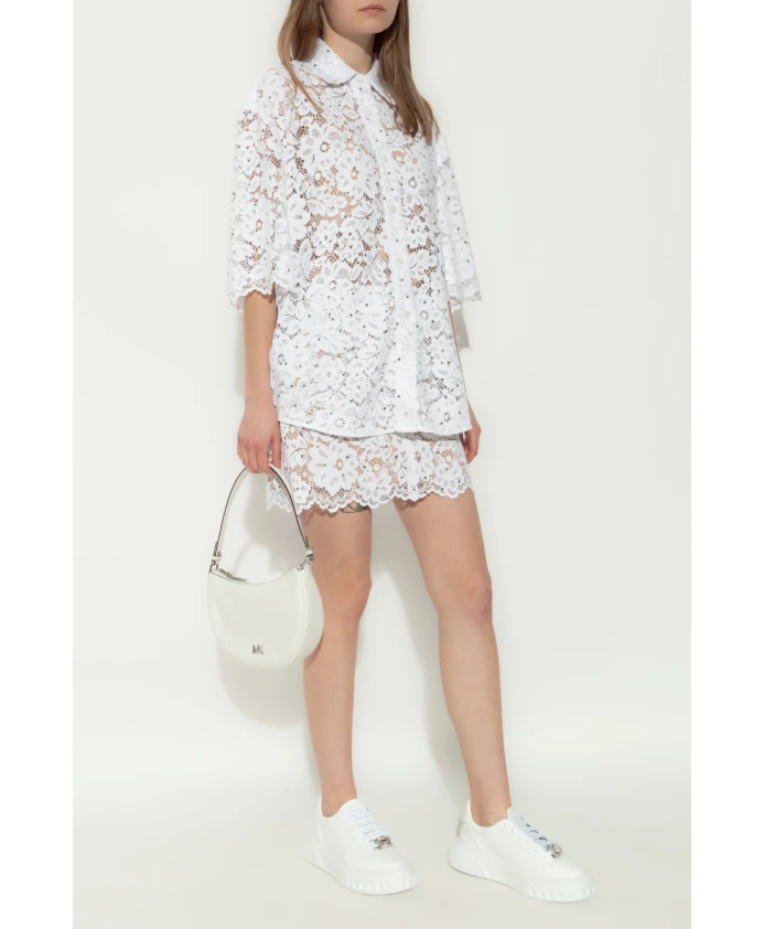 Представляем кружевную юбку из эксклюзивной коллекции MICHAEL MICHAEL KORS. Эта элегантная юбка выполнена из нежного кружева с цветочным узором, дополненного мерцающими элементами, которые придают ей неповторимый блеск. Созданная с учетом потребностей современной женщины, эта юбка имеет короткую длину, заканчивающуюся выше колен, что делает ее идеальным выбором для летних мероприятий. Волнистый подол добавляет очарования, а эластичный пояс обеспечивает комфорт и идеальную посадку. Преобладающий белый цвет делает ее универсальным элементом гардероба, который прекрасно сочетается с другой одеждой. Изготовленная из высококачественного полиэстера, она застегивается на молнию, крючок и пуговицу, сочетая элегантность и функциональность. ПОЧЕМУ СТОИТ КУПИТЬ ЭТОТ ТОВАР? * Элегантный дизайн от известного бренда MICHAEL MICHAEL KORS. * Изготовлена из нежного кружева с исключительным узором. * Универсальный белый цвет, легко сочетается с другой одеждой. * Нежные детали, придающие юбке неповторимый шарм. * Комфортна в ношении благодаря эластичному поясу. Параметры модели: Рост: 177 см, Обхват груди: 83 см, Обхват талии: 61 см, Обхват бедер: 89 см. Модель носит размер 4.