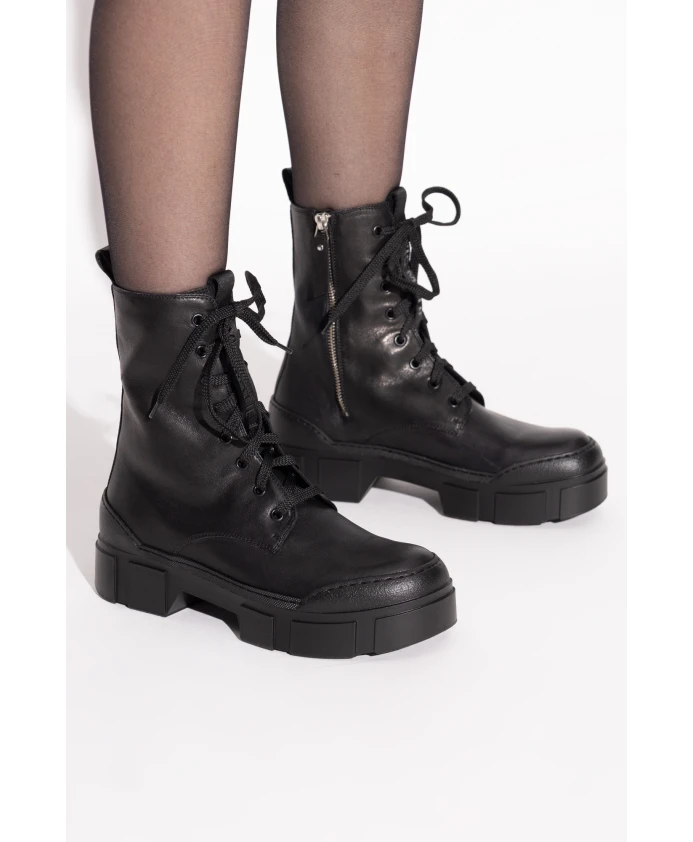 Кожаные ботинки Vic Matie воплощают в себе суть современной элегантности в минималистичном стиле. Изготовленные из высококачественной матовой натуральной кожи, они впечатляют безупречным мастерством и изысканными деталями. Классический, вневременной дизайн до щиколотки - с удлиненным закругленным носком, широким верхом и прочной, утолщенной подошвой - отражает современную и авангардную эстетику. Сегментированная геометрическая резиновая подошва подчеркивает дизайнерский характер обуви, обеспечивая при этом комфорт и устойчивость. Монохромный черный тон, лишенный лишних украшений, создает поразительно универсальный фон для городских образов. Непрерывная шнуровка - это одновременно практичная и привлекательная деталь, подчеркивающая тщательность изготовления. ПОЧЕМУ СТОИТ ВЫБРАТЬ ЭТОТ ТОВАР? * Исключительное качество и роскошные материалы * Вневременной, женственный дизайн с авангардными элементами * Невероятный комфорт благодаря прочной нескользящей подошве * Тщательно отобранные материалы и итальянское мастерство * Минималистичная универсальность для тщательно продуманного эстетического вида. Высота подошвы: 3 см. Высота подошвы в самой высокой точке: 4 см.
