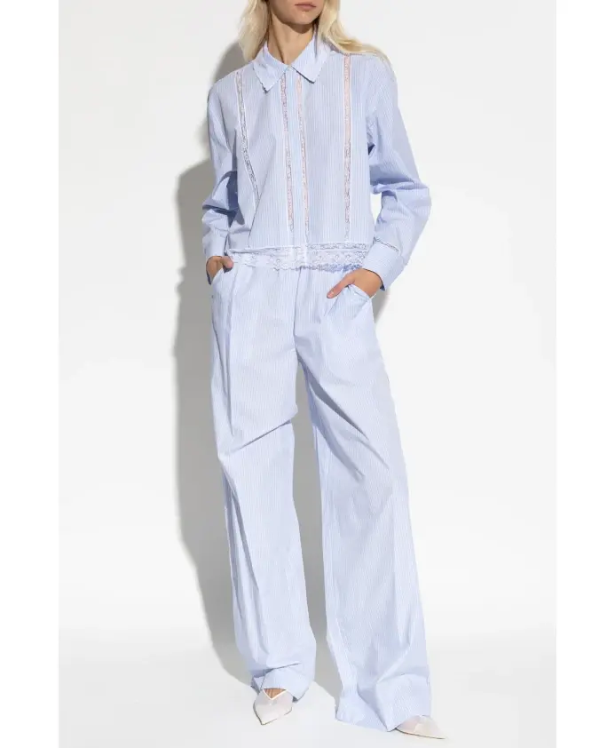 Топ DELANO от LoveShackFancy воплощает в себе утонченную элегантность и мастерство исполнения. Светло-голубой цвет, дополненный вертикальной полосой, привносит свежесть и ощущение исключительной легкости. Классический, простой крой с длинными рукавами и обычной линией плеч гармонично подчеркивает силуэт, а длина до талии обеспечивает вневременную привлекательность. Топ изготовлен из высококачественной хлопковой ткани с текстурой, напоминающей рубашку, что гарантирует воздухопроницаемость и комфорт в течение всего дня. Нежные, полупрозрачные кружевные вставки на воротнике, вдоль планки с пуговицами, линии плеч и подоле привлекают внимание и добавляют изысканного шарма всему образу. Точная работа идеально подчеркивает уникальный, эксклюзивный характер этого изделия. ПОЧЕМУ ЭТОТ ТОВАР СТОИТ КУПИТЬ? * Роскошный материал, обеспечивающий комфорт и воздухопроницаемость * Уникальные кружевные детали, подчеркивающие изысканность * Классический крой с элегантной полоской для вневременного стиля * Отличный выбор для любого особого случая Параметры модели: Рост: 177 см Обхват груди: 83 см Обхват талии: 61 см Обхват бедер: 89 см Модель носит размер: S
