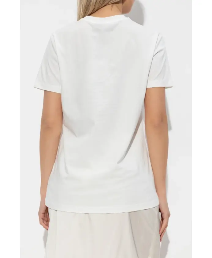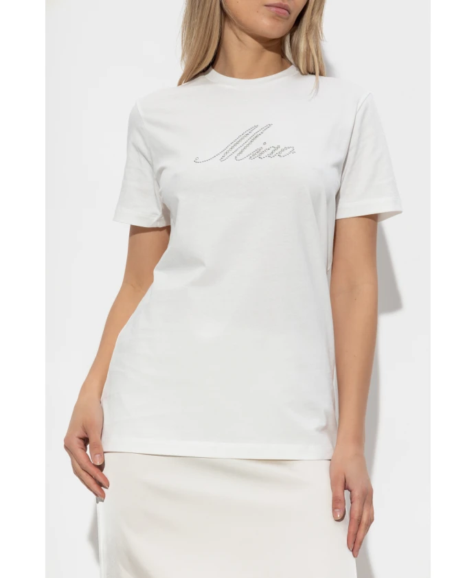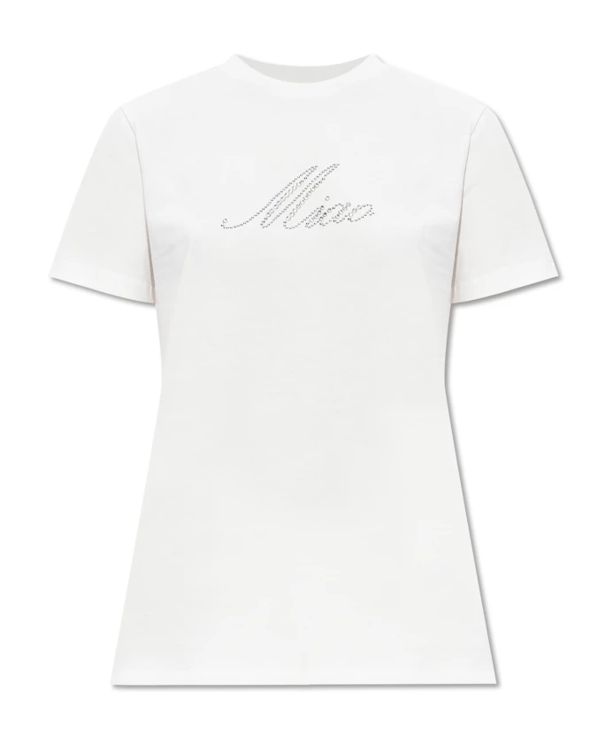Футболка LOGO от Blumarine - воплощение изысканной простоты в женском гардеробе. Нежный белый оттенок гармонично сочетается с классическим, слегка приталенным силуэтом прямого кроя, тонко подчеркнутым круглым вырезом и короткими рукавами. Футболка изготовлена из мягкого, высококачественного хлопка приятной текстуры, обеспечивающего не только легкость, но и комфорт на каждый день. Самая яркая деталь - декоративная надпись «Miu», выполненная из мерцающих аппликаций в виде мелких кристаллов, искусно расположенных в центре груди орнаментальным шрифтом. Образ дополняют аккуратные детали, без лишних швов и необработанных краев. Этот дизайн воплощает современную элегантность и утонченную женственность, подчеркнутую уникальным логотипом и репутацией итальянского бренда. ПОЧЕМУ СТОИТ КУПИТЬ ЭТОТ ТОВАР? * Эксклюзивный характер и кропотливая работа * Уникальный, сверкающий логотип с кристаллами * Высококачественная, мягкая хлопковая ткань * Универсальный крой, подходящий для многих нарядов * Воплощение вневременной элегантности Blumarine Параметры модели Рост: 176 см Обхват груди: 85 см Обхват талии: 60 см Обхват бедер: 89 см Модель носит размер: XS