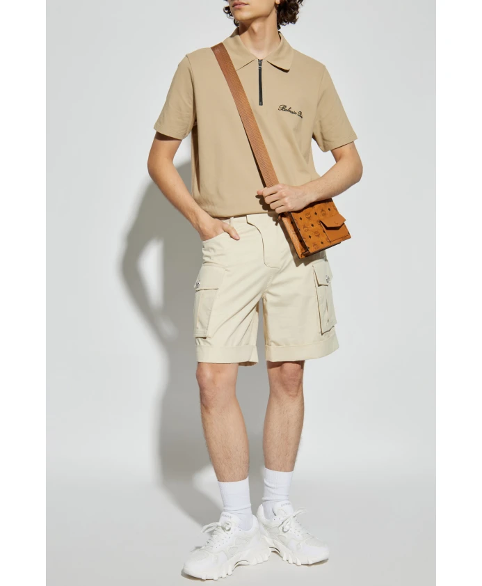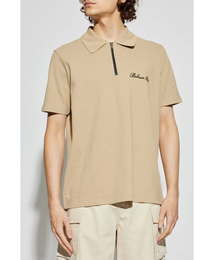 Рубашка-Поло с вышитым логотипом Balmain, бежевый