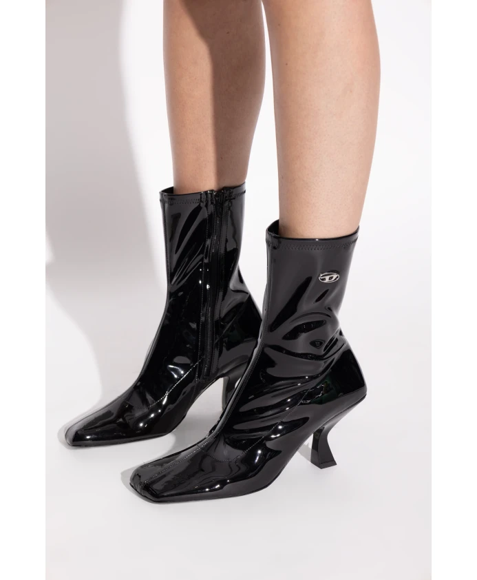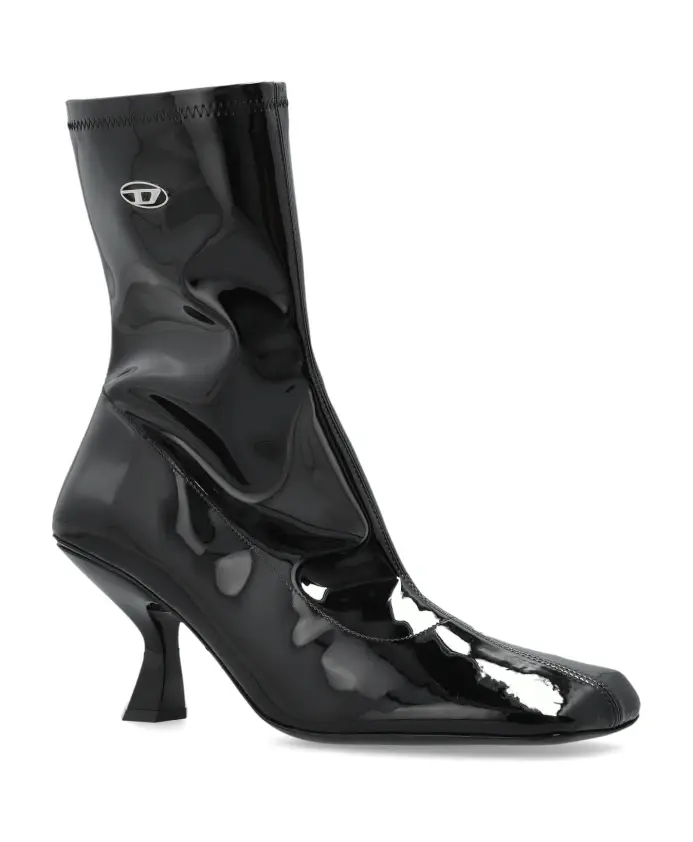 Ботильоны DIESEL 'D-AMBER' воплощают современную элегантность. Они имеют облегающее голенище до середины икры и классически удлиненный носок. Дизайн отличается глянцевой запатентованной отделкой «зеркального эффекта», которая ненавязчиво подчеркивает эксклюзивный характер обуви. Геометрический, выразительный каблук-рюмочка обеспечивает непревзойденную устойчивость, а гармоничный минимализм силуэта подчеркивает чистую изысканность. Эти ботильоны, лишенные лишних украшений, очаровывают своей гладкой текстурой и элегантным металлическим логотипом дизайнера, расположенным чуть ниже верха голенища. Внутренняя часть отделана мягкой кожей и высококачественной тканью, дополненной гибкой резиновой подошвой для исключительного комфорта. Практичная молния во всю длину обеспечивает легкое надевание и снимание, а также точную посадку. ПОЧЕМУ СТОИТ ВЫБРАТЬ ЭТОТ ТОВАР? * Изысканный блеск и минималистичный дизайн * Удобный, устойчивый каблук-рюмочка * Ненавязчивый металлический логотип - знак роскоши * Сочетание кожи и ткани для максимального комфорта * Бренд Diesel, подчеркивающий итальянский престиж Высота подошвы: 1 см Высота каблука: 8 см