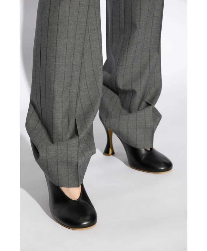 Представляем кожаные туфли на высоком каблуке из эксклюзивной коллекции MOSCHINO - воплощение элегантности и изысканного стиля. Эти черные туфли имеют закругленный носок и уникальную форму каблука, который изгибается вниз и расширяется наружу, придавая им исключительный характер. Изготовленные из лучшей кожи, эти туфли отличаются гладкой поверхностью и классическим дизайном, тонко подчеркнутым логотипом дизайнера, расположенным внутри. Каблук средней высоты добавляет элегантности, делая их идеальным выбором для формальных нарядов, таких как серый костюм. Основанный Франко Москино в 1983 году, бренд MOSCHINO известен своими моделями, излучающими свежесть, игривость и юмор, что делает эти туфли не только роскошным, но и оптимистичным дополнением к любому гардеробу. ПОЧЕМУ СТОИТ КУПИТЬ ЭТОТ ТОВАР? * Уникальный дизайн каблука, привлекающий внимание. * Изготовлены полностью из лучшей кожи. * Изящная поверхность и стильный логотип дизайнера. * Идеальная обувь для формальных и элегантных нарядов. * Они олицетворяют жизнерадостный и беззаботный дух. Провокационный стиль бренда Moschino. Высота каблука: 10,5 см. Высота подошвы: 0,5 см.