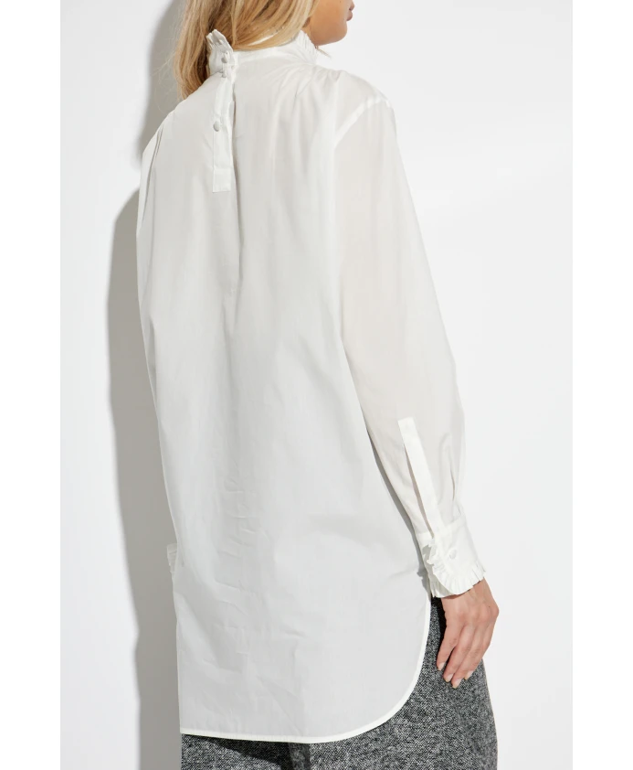 Рубашка Max Mara Gettata - это изысканная хлопковая туника, отличающаяся присборенным воротником-стойкой и лаконичным минималистичным силуэтом. Она сочетает в себе легкость и вневременную элегантность для создания утонченного повседневного образа. Ключевые особенности: Белый | Хлопок | Легкая ткань | Дышащая ткань | Слегка прозрачная отделка | Длина туники для большей закрытости | Свободный крой для свободы движений | Манжеты на пуговицах | Высокий присборенный воротник-стойка | Закругленный низ | Слегка присборенные манжеты с маленькими пуговицами | Минималистичный, простой силуэт | Размеры и посадка: Рост модели: 176 см | Обхват груди: 85 см | Обхват талии: 60 см | Обхват бедер: 89 см | Модель носит размер: 40 | Свободный крой в стиле туники | Длина в стиле туники | Закругленный асимметричный низ | Состав и уход: 100% хлопок | Ручная стирка в холодной воде (макс. 40°C); не отбеливать; не сушить в сушильной машине; сушить на воздухе в тени; гладить при низкой температуре; Профессиональная химчистка (перхлорэтилен, щадящий режим); стирать в закрытом виде; вывернуть наизнанку перед стиркой; не гладить пуговицы.