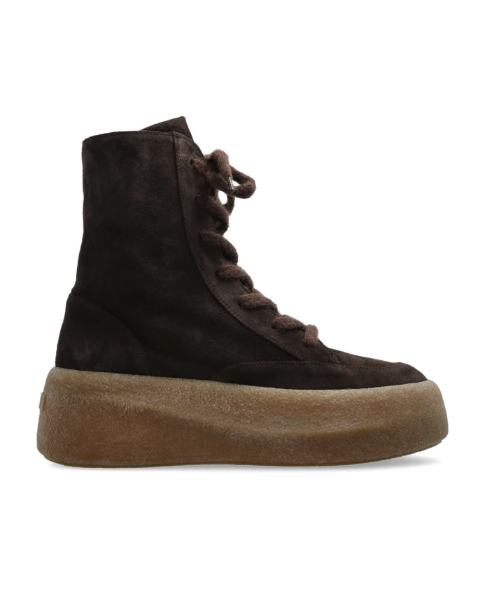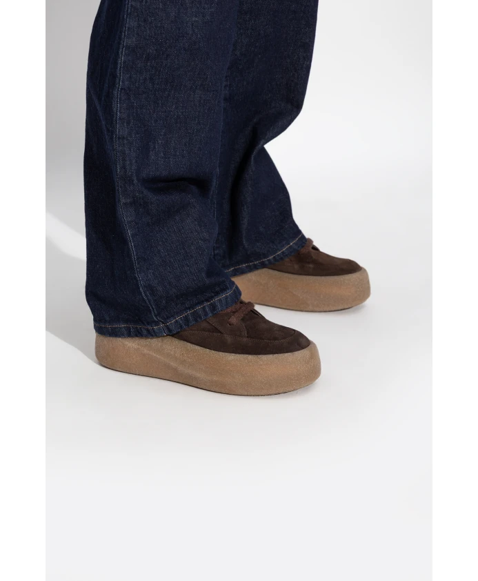 Замшевые туфли на платформе от Vic Matie представляют собой изысканное сочетание современной формы и вневременной элегантности. Массивная, закругленная платформа и высокий голенище до щиколотки создают смелый, авангардный стиль, гармонично сохраняя при этом классический силуэт туфель на шнуровке. Верх, изготовленный из высококачественной однородной замши, подчеркивает минималистичный характер обуви. В то же время, слегка текстурированная подошва идеально дополняет модный городской шик. Сдержанная элегантность дизайна дополнительно подчеркивается шнурками и металлической молнией, выполненными в тон верху, а отсутствие видимых логотипов дизайнера намекает на его престижную, сдержанную изысканность. ПОЧЕМУ ЭТОТ ТОВАР СТОИТ КУПИТЬ? * Исключительная эстетика, вдохновленная авангардным итальянским дизайном * Премиальные материалы - натуральная высококачественная кожа * Универсальный стиль - идеально подходит для повседневной носки и создания изысканных образов * Практичность - удобная шнуровка и функциональная боковая молния * Сдержанная элегантность без лишних украшений. Высота платформы в самой высокой точке: 7 см