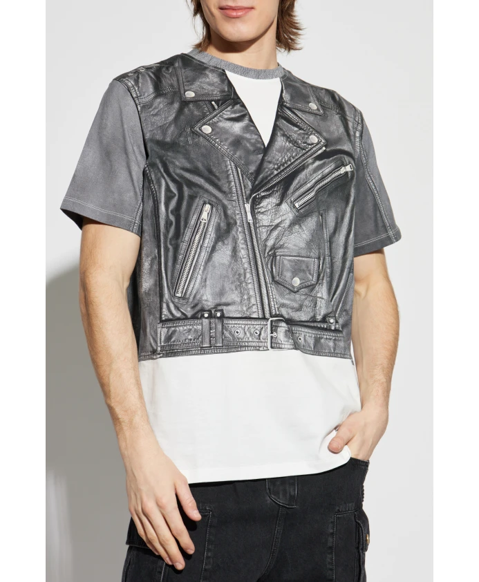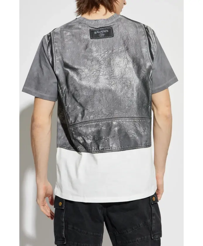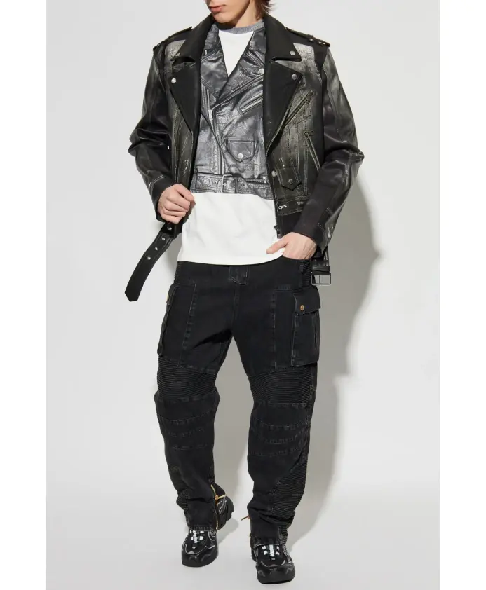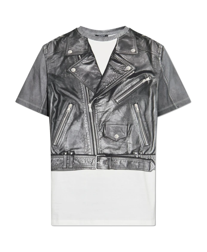 Представляем футболку с принтом от Balmain, воплощающую современный подход к моде. Эта изысканная футболка сочетает в себе комфорт и смелый дизайн, напоминающий кожаную байкерскую куртку. Принт запечатлел такие детали, как молнии, лацканы, карманы и пояс, а текстура ткани напоминает мягкую хлопковую смесь. Элегантный серый цвет принта прекрасно контрастирует с белой нижней частью футболки. Классический крой с короткими рукавами и круглым вырезом обеспечивает вневременной образ, а едва заметный логотип Balmain на спине добавляет нотку эксклюзивности. Этот продукт - не только дань уважения рок-дизайну, но и воплощение юношеской экстравагантности, типичной для видения Оскара де ла Ренты и Оливье Рустена. ПОЧЕМУ СТОИТ КУПИТЬ ЭТОТ ТОВАР? * Уникальный принт, имитирующий кожаную байкерскую куртку. * Изготовлено из мягкого высококачественного хлопка. * Классический крой, который подходит любой фигуре. * Эксклюзивность, гарантированная брендом Balmain. * Идеальное сочетание комфорта и модного стиля. Параметры модели: Рост: 185 см, Обхват груди: 92 см, Обхват талии: 74 см, Обхват бедер: 91 см. Модель носит размер: L