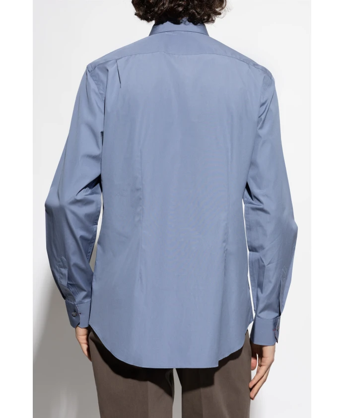 Эта классическая рубашка от PAUL SMITH впечатляет своим вневременным дизайном и исключительным мастерством. Тщательно сшитая из лучшего хлопка, она отличается легким блеском и изысканной, гладкой текстурой ткани. Слегка расклешенный низ гармонирует с безупречным кроем и подчеркивает элегантность стиля, а длинные рукава с простыми манжетами и традиционным воротником делают эту рубашку воплощением формальной эстетики. Ее отличительный характер подчеркивают серебристо-серые пуговицы и отсутствие видимых логотипов, что делает рубашку универсальным и вневременным выбором для ценителей изысканной мужской одежды, вдохновленной британским эклектизмом и исключительным видением Пола Смита. ПОЧЕМУ ЭТОТ ТОВАР СТОИТ КУПИТЬ? * Идеальный классический крой, подчеркивающий силуэт * Роскошный хлопок для исключительного комфорта * Исключительное внимание к деталям и безупречное качество исполнения * Универсальный стиль - вневременная элегантность для любого случая * Дизайн от выдающегося британского модельера Параметры модели Рост: 185 см Обхват груди: 92 см Обхват талии: 74 см Обхват бедер: 91 см Модель носит размер: 16